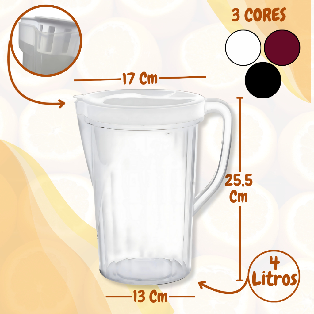 Jarras Plásticas com Tampa Transparente Leves Fáceis de Lavar e Empilhar