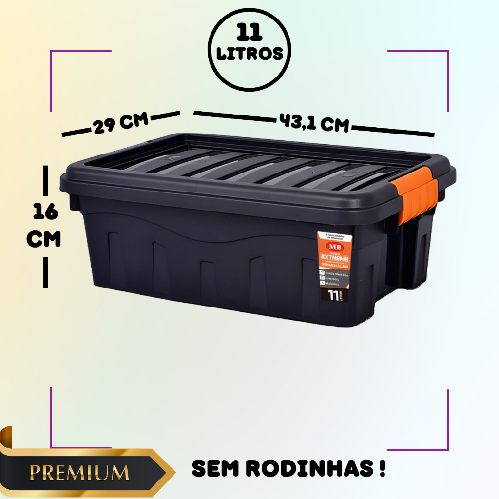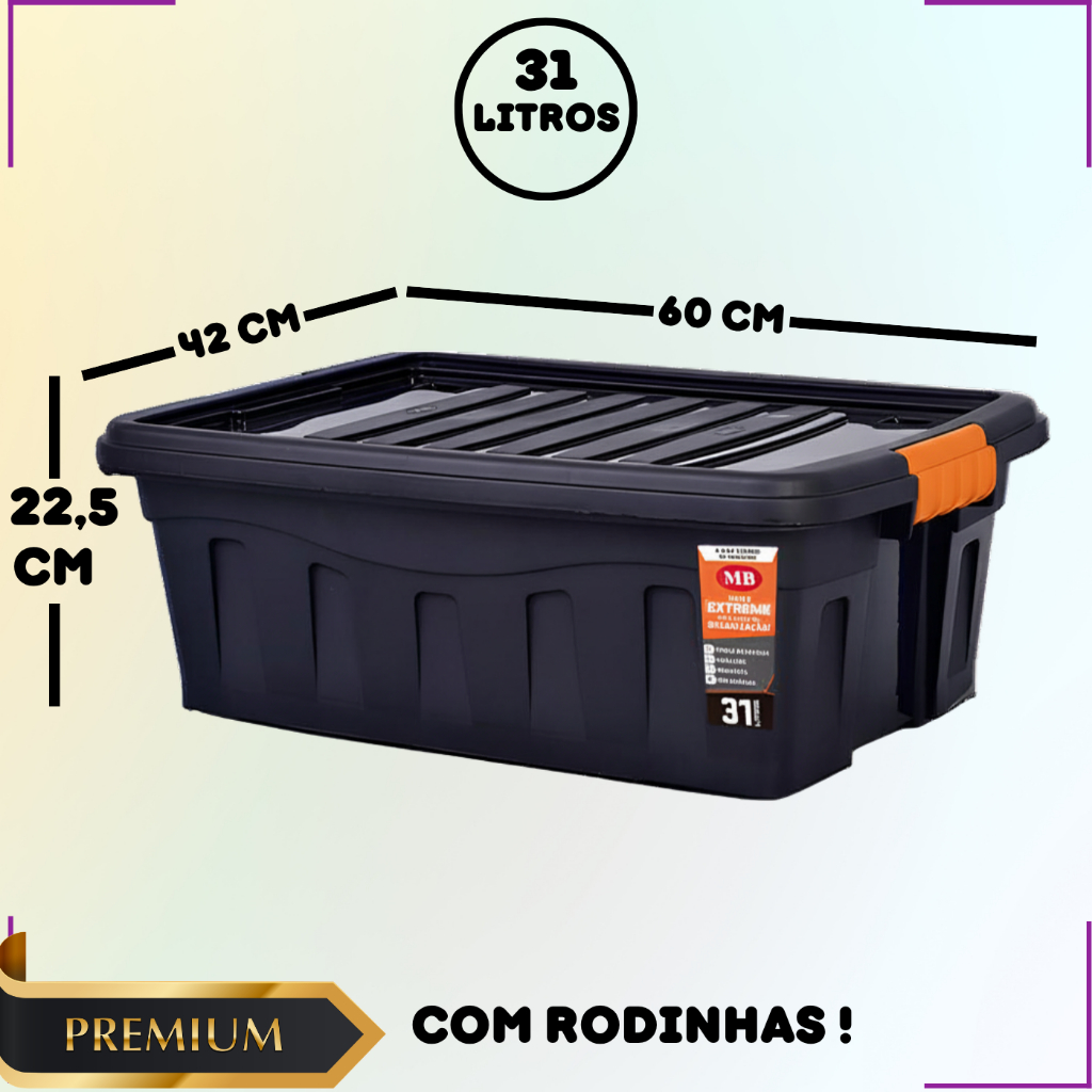 Caixa Organizadora 53L Com Tampa Forte Preta Resistente Rodinhas Trava Reforçada Multiuso Grande