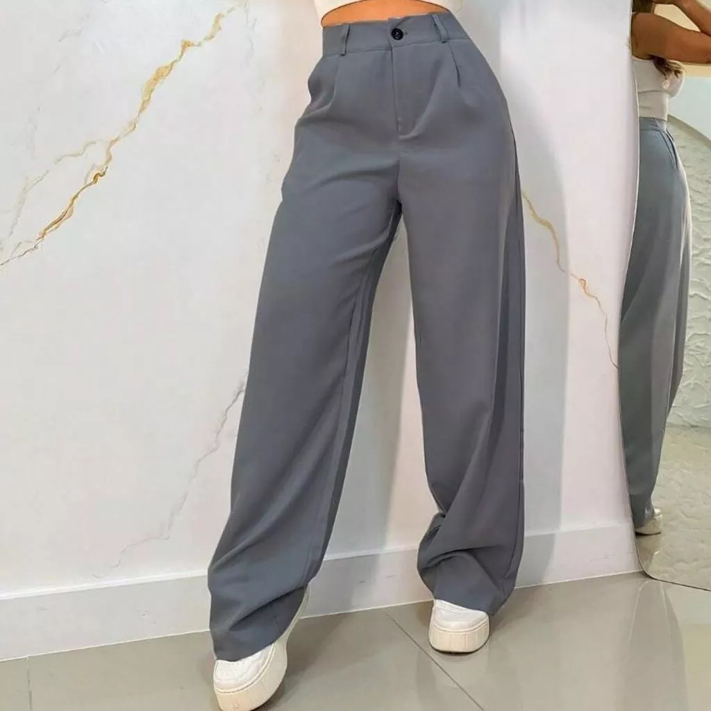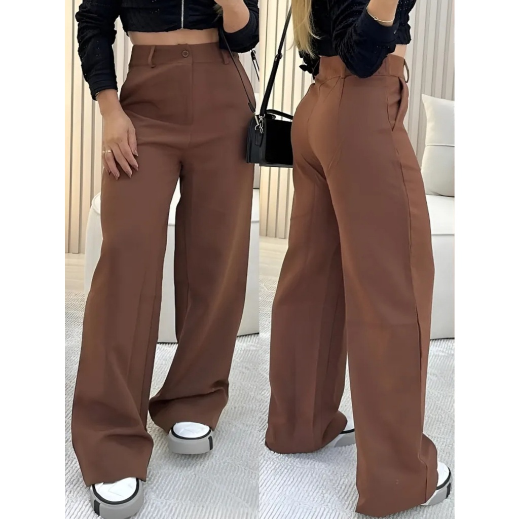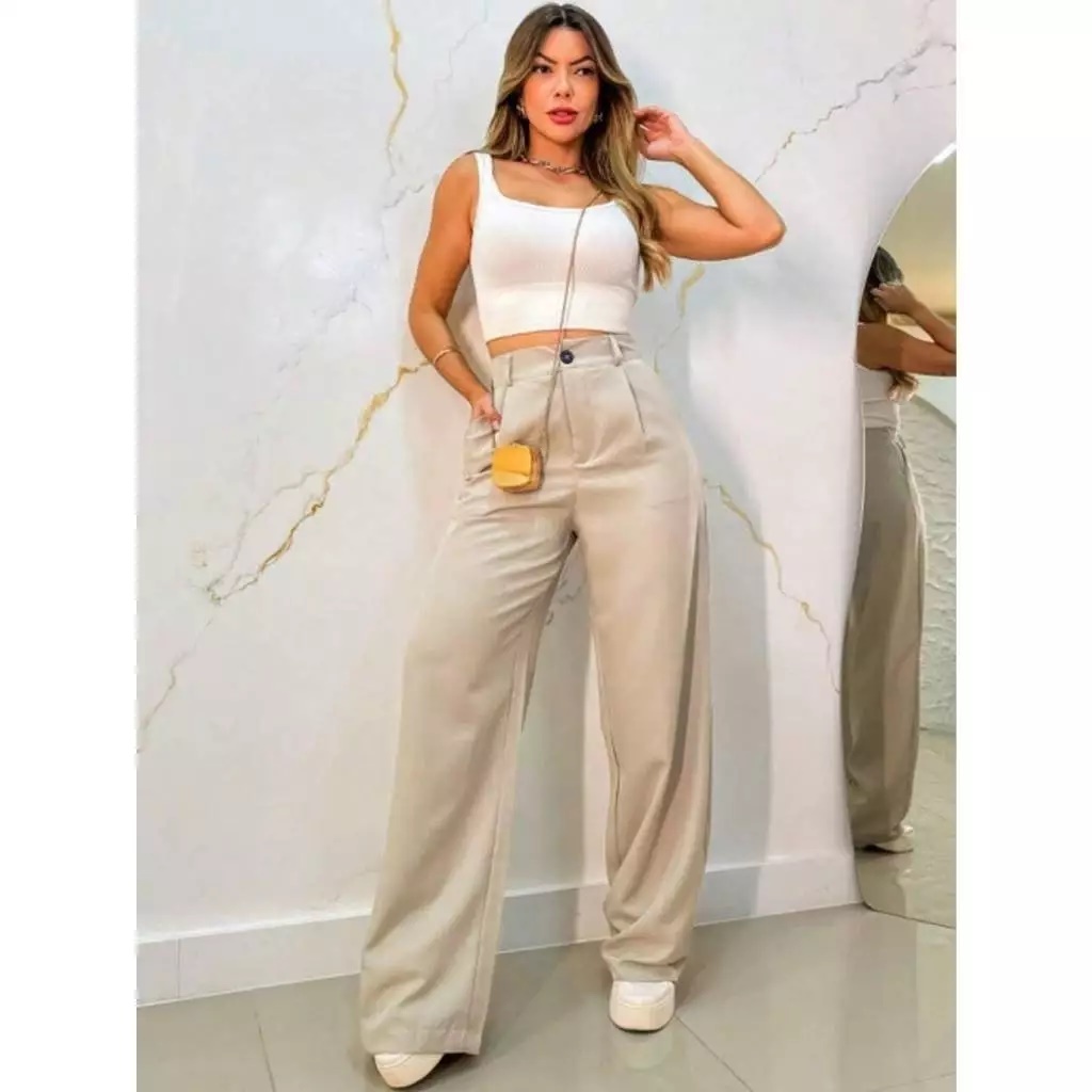 Calça Pantalona Feminina Alfataria com Botão e Ziper Wide Leg