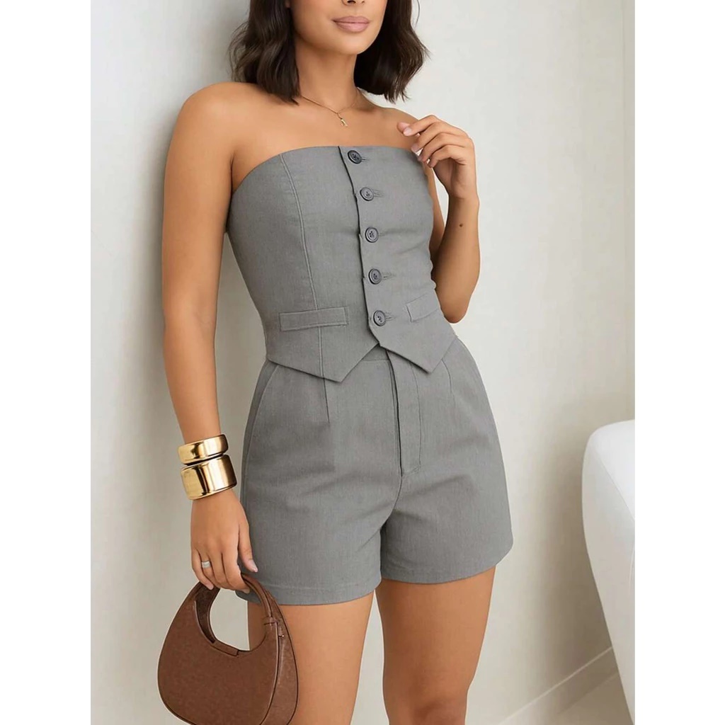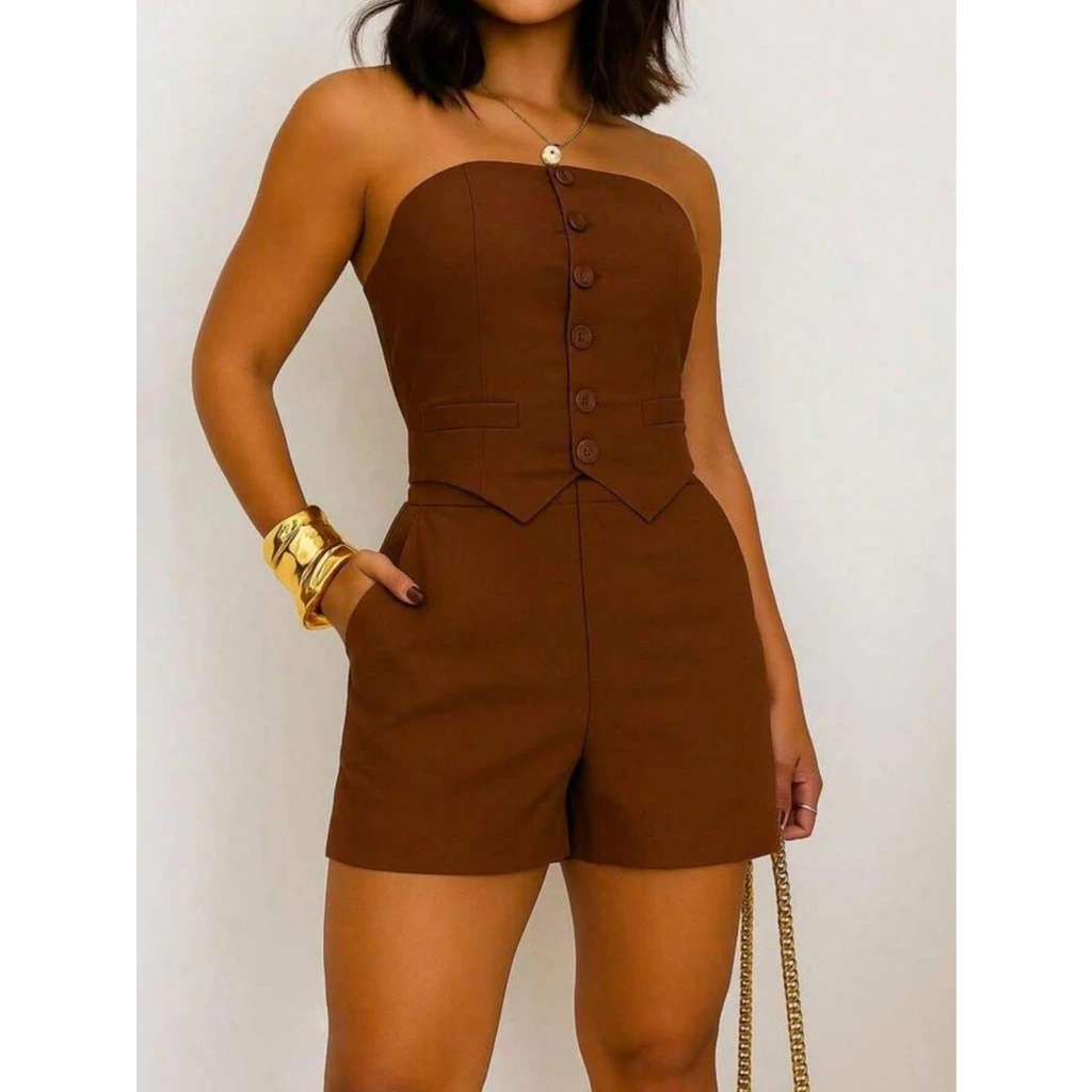 Conjunto Social Tomara que Caia e Short Alfaiataria Feminino