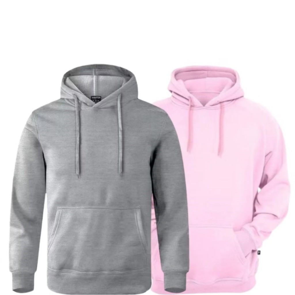 Kit 2 Casaco Moletom Canguru Com Capuz e Bolso Masculino e Feminino Liso Sem Estampa Unissex