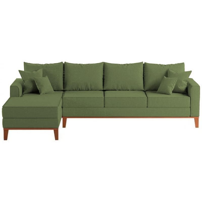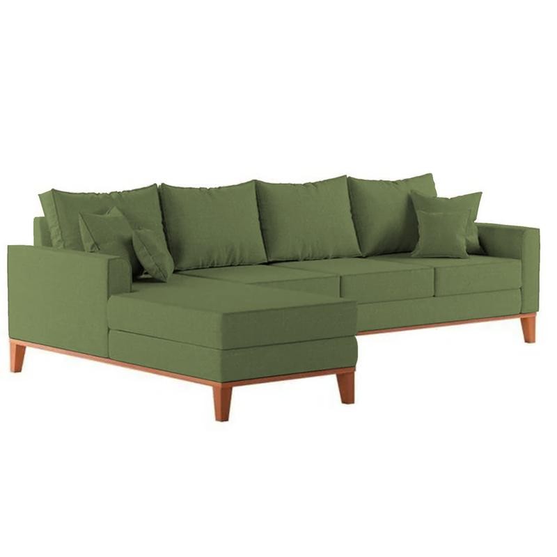 Sofá 4 Lugares Beny com Chaise Esquerdo Linho Verde Oliva