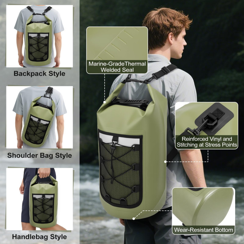 Bolsa seca à prova d'água de grande capacidade, mochila flutuante à prova d'água, adequada para caiaque, rafting e pesca