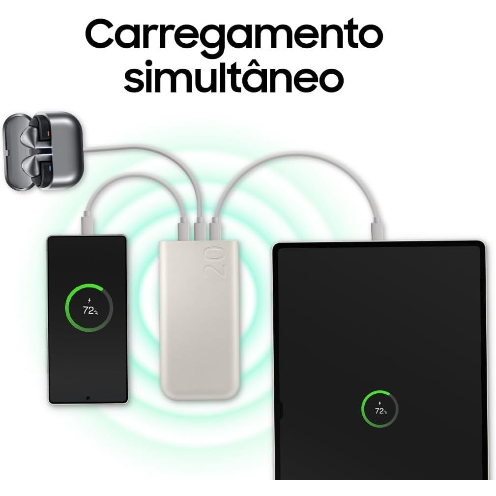 Samsung Bateria Carregador Portatil 3x USB-C 20000mAh Super Rapida 45W EB-P4520X - Bege