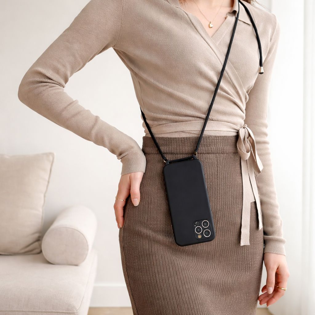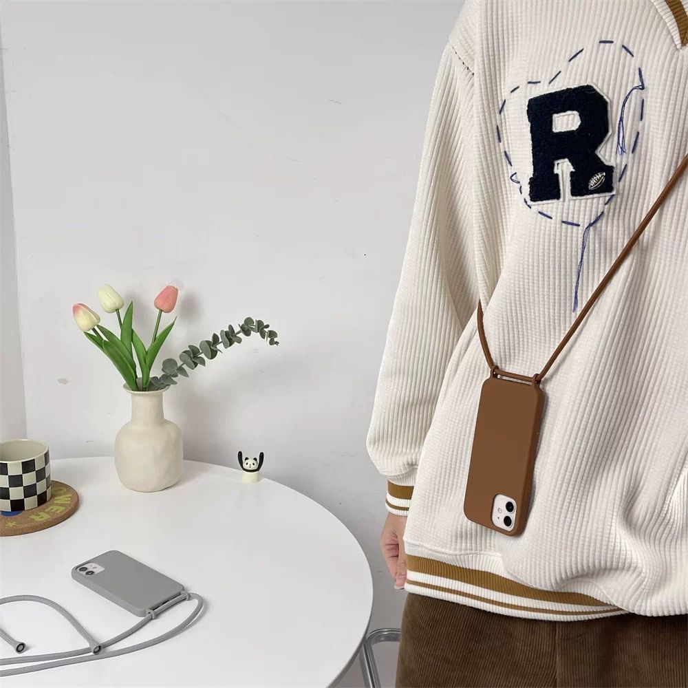 Capa Capinha com Cordão para iPhone 17 17 Air 16 16E 15 14 13 12 11 Pro Max TPU Lisa Aveludada Antichoque