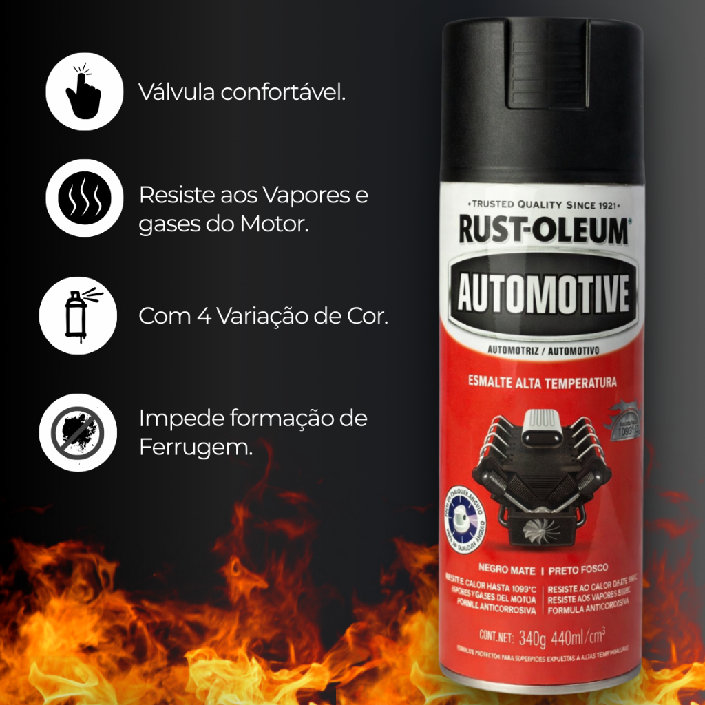 Tinta Spray Alta Temp Preto Fosco Motor 1093°c Rust Oleum