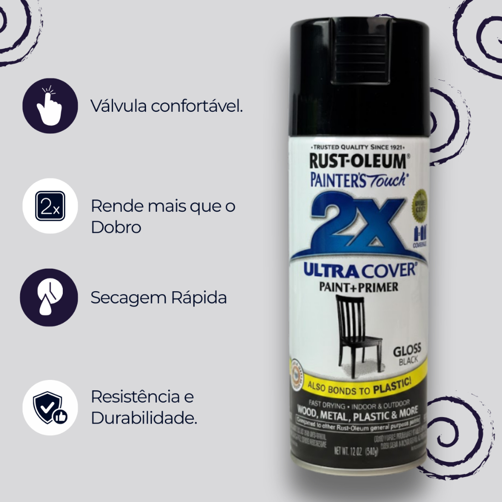 Spray Ultra Cover Multiuso Preto Brilhante Rust Oleum