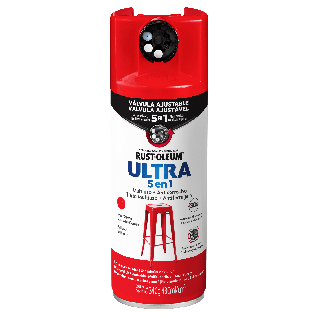 Rust Oleum Tinta Spray para Superfícies de Metal e Madeira Ultra 5 em 1 Vermelho Cereja Brilhante 340g
