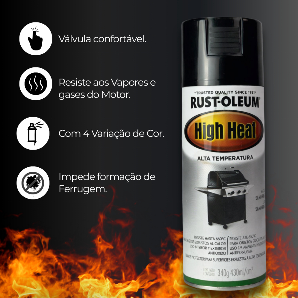 Spray Alta Temp Churrasqueira 650°c Preto Brilhante Rust Oleum