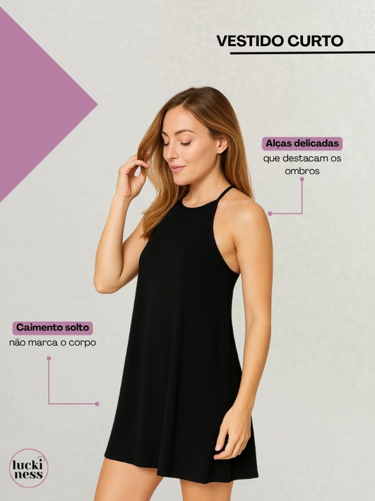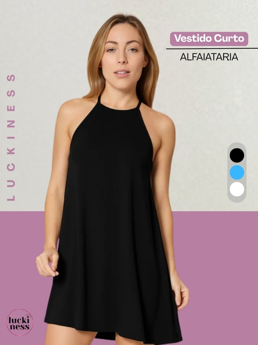 Vestido Curto Feminino Alfaiataria de Alcinha Com Botão Nas Costas