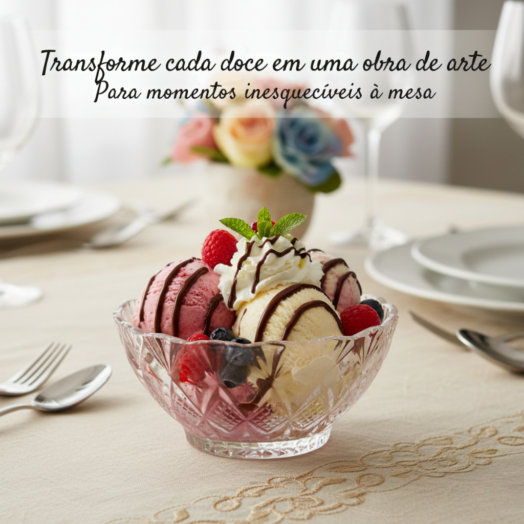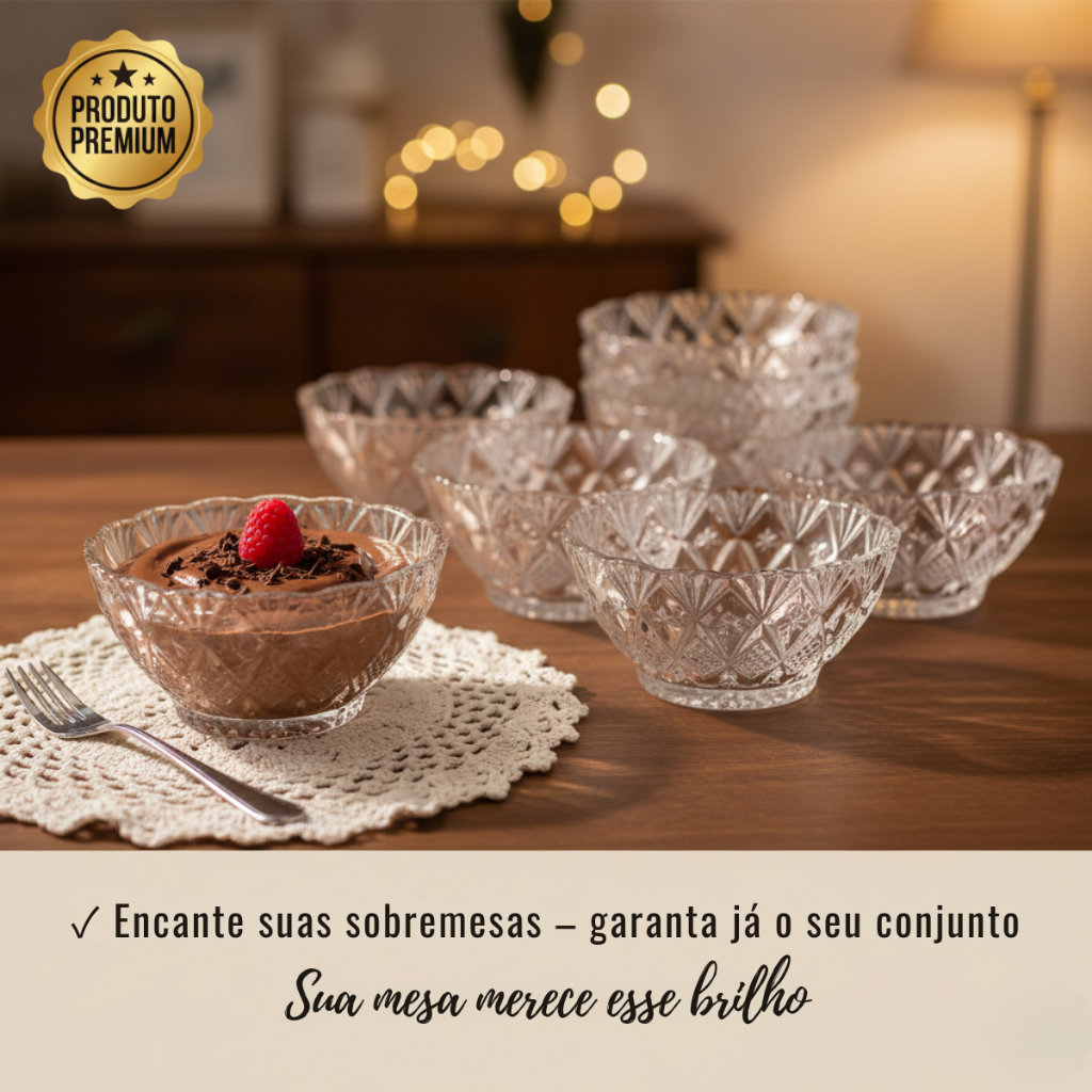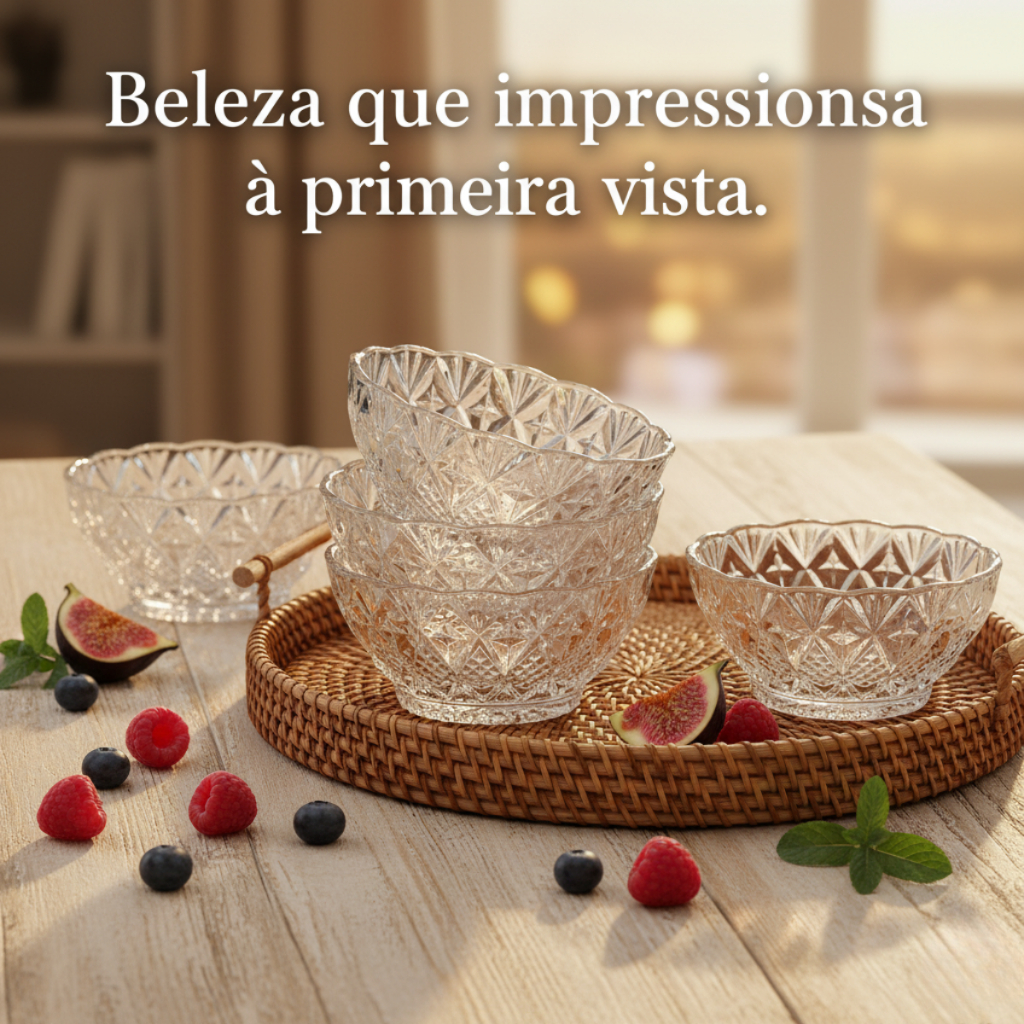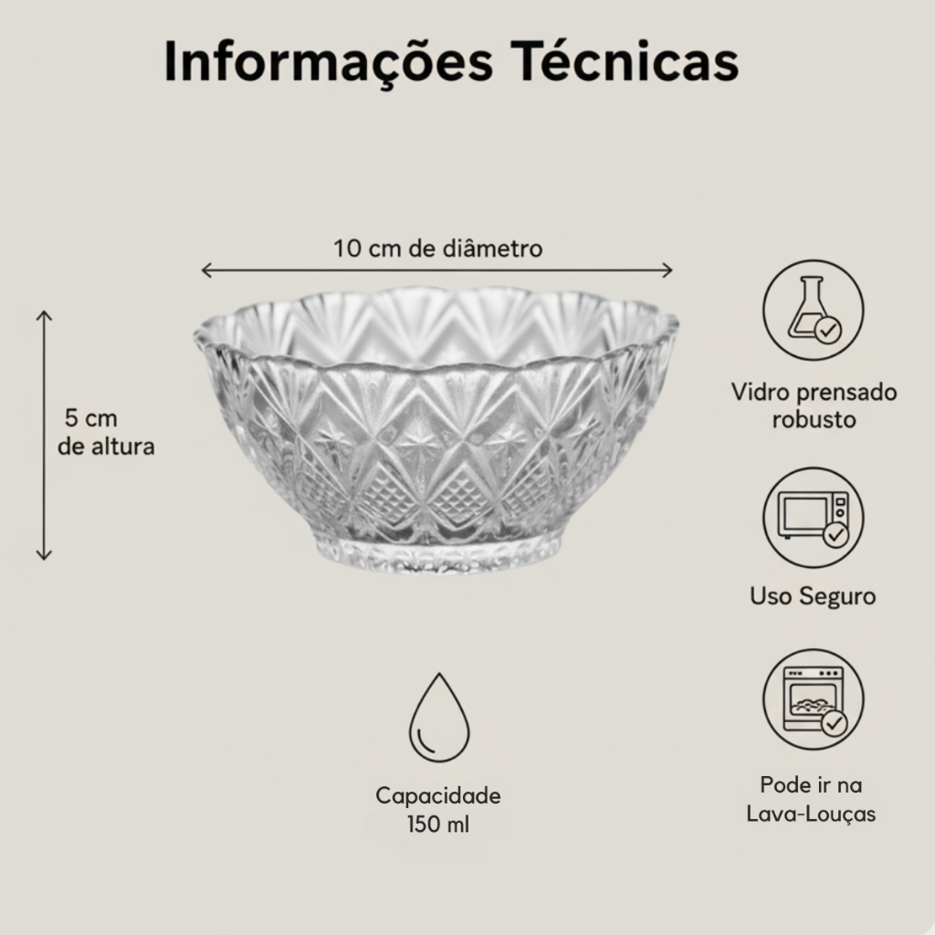 Jogo 6 Taças Tigela Bowls Premium Para Sobremesas 150ml Vidro Doce Sorvete Frutas Aperitivos