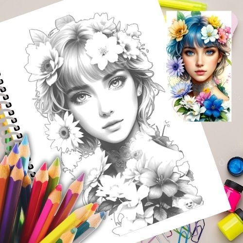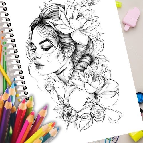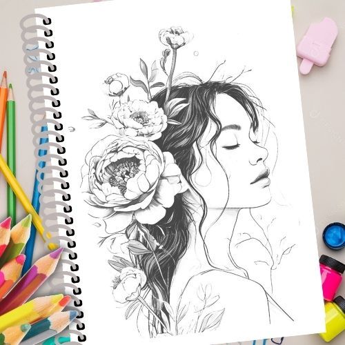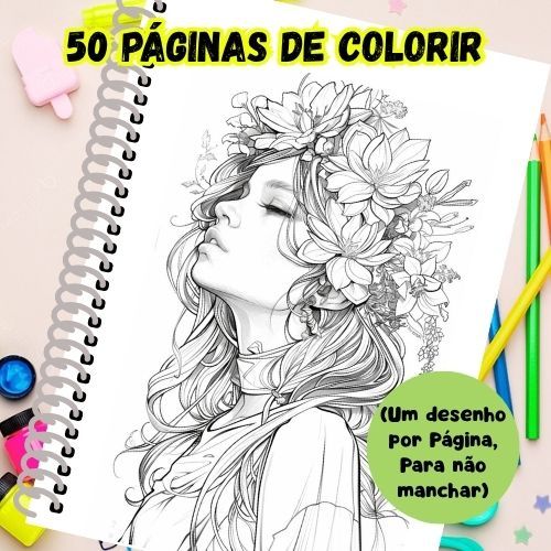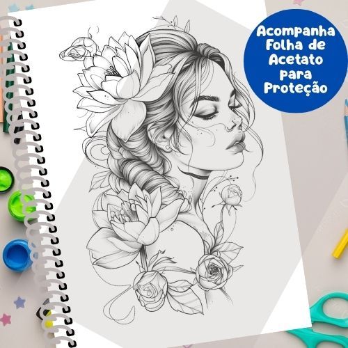 Livro de Colorir para Adultos – Woman Flower – Mulheres e Flores em Arte Delicada