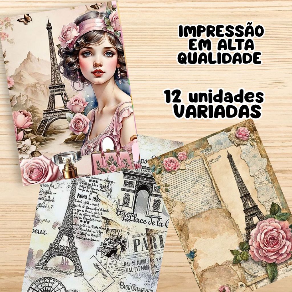 ❤️ Papel de Carta Decorado Vintage | 12 Folhas 90g | Estilo Retrô Paris