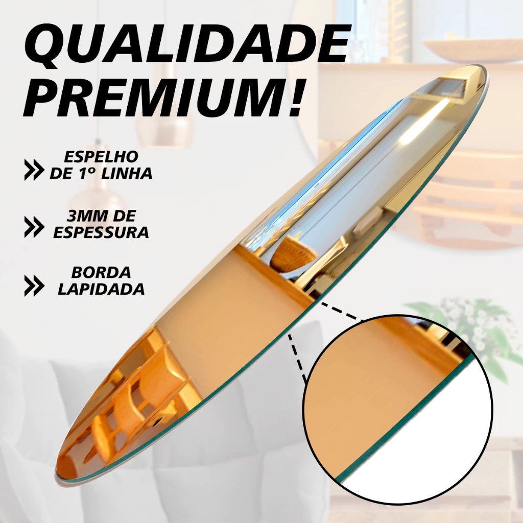 Espelho Redondo Vidro Lapidado Alta Qualidade Decorativo Para Quarto Sala Banheiro Lavabo Maquiagem