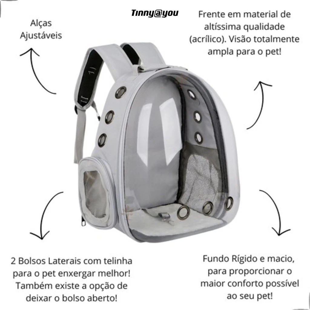 Mochila Bolsa Pet Visão Panorâmica Astronauta Color Gato Ou Cachorro