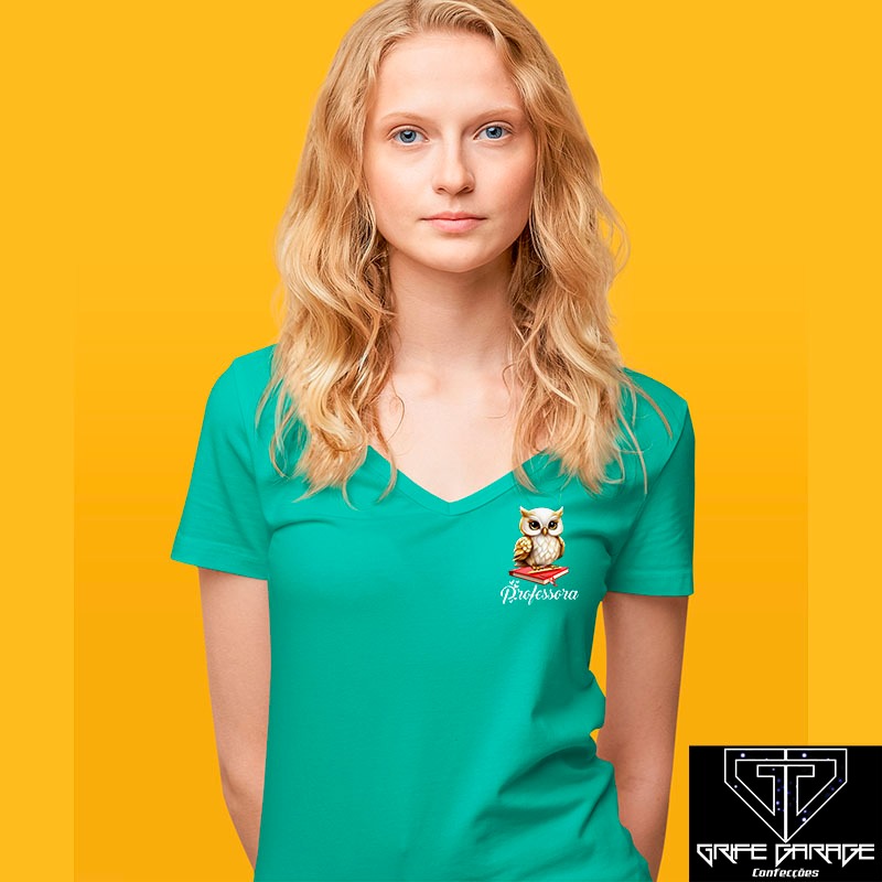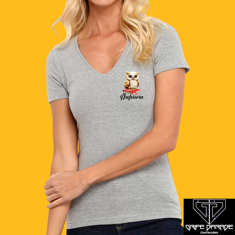 Camiseta Feminina Professora Coruja Estampada Baby look Personalizada