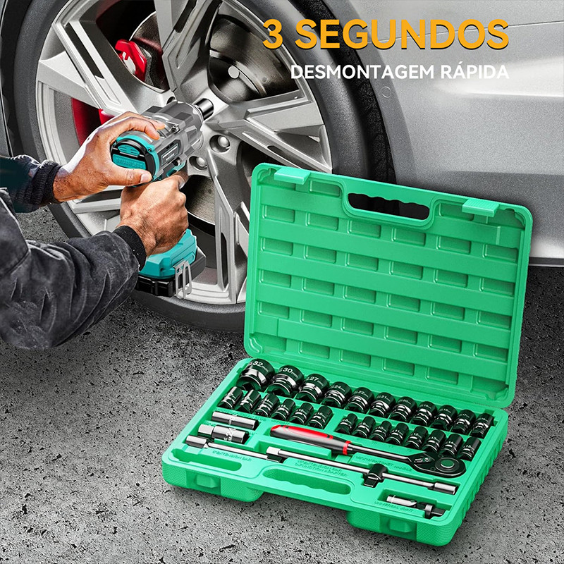 Conjunto De Chaves De Soquete ElétricasDe 32 Pcs Com Catraca Rápida paraReparos Automotivos e Domésticos