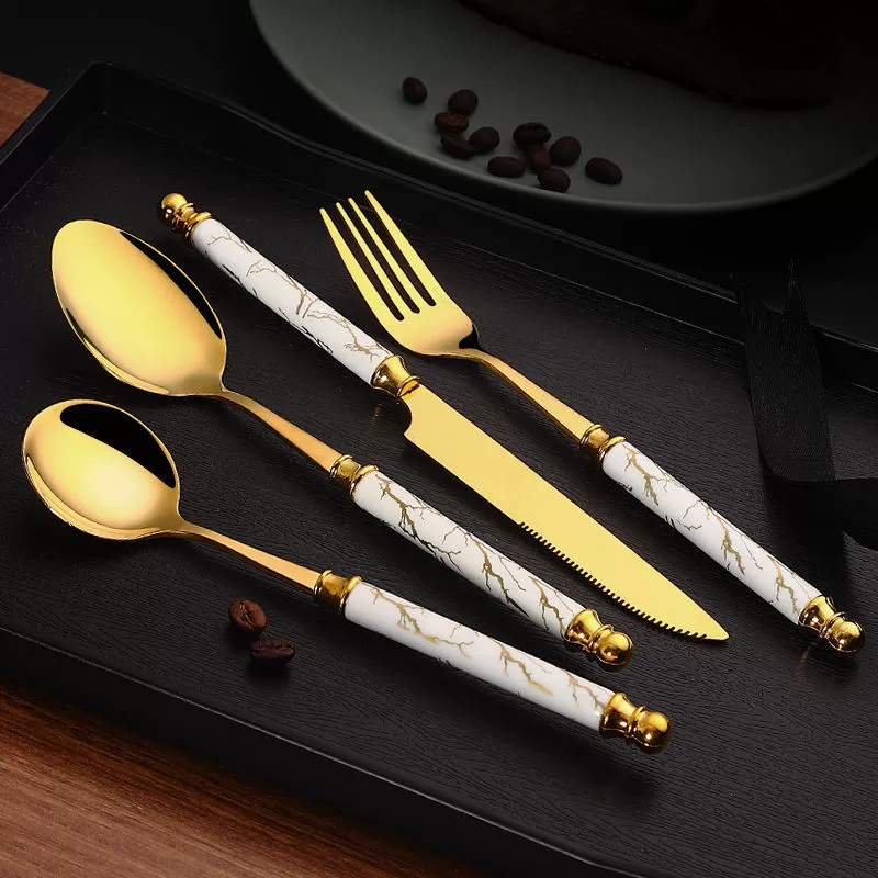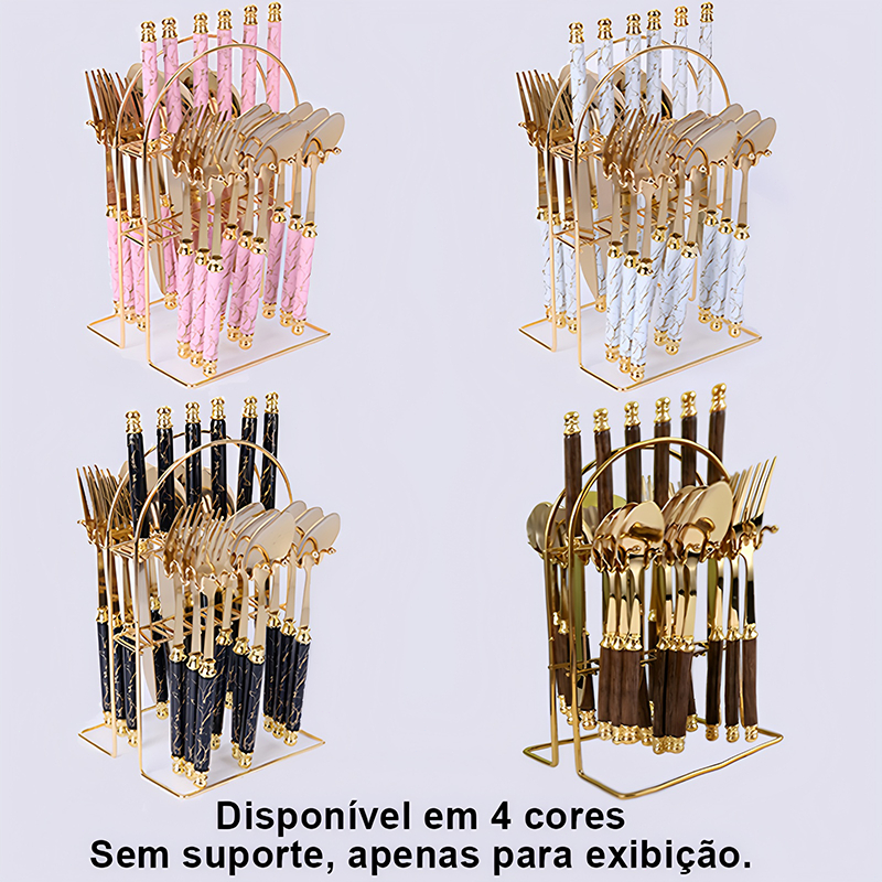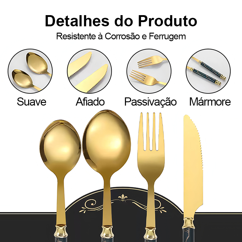 【😍Novas chegadas!!!】Kit 24 talheres de aço inoxidável de luxo Conjunto de talheres, garfo e colher de padrão de mármore