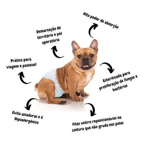 Fralda Higiênica Descartável Para Cachorro Macho M 12un. Branco