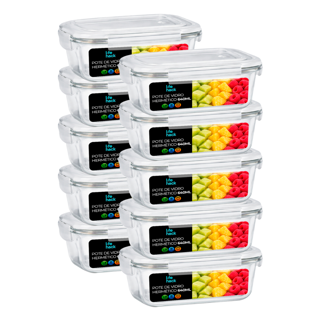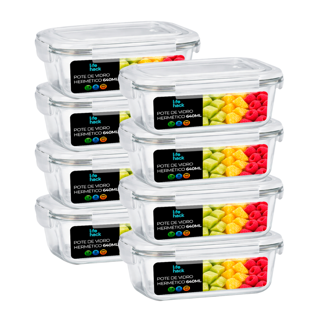 Conjunto Potes Vidro Hermético Mantimentos Marmita 640ml
