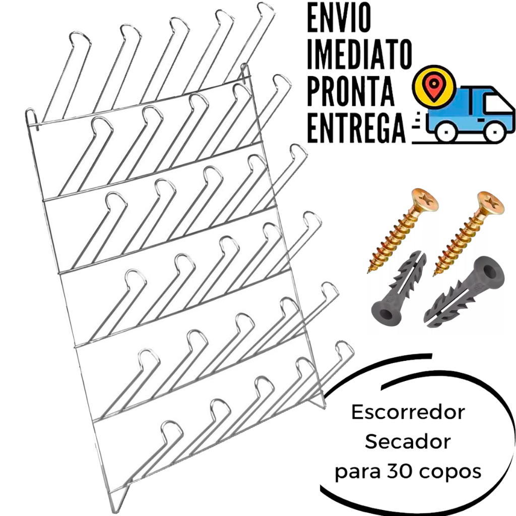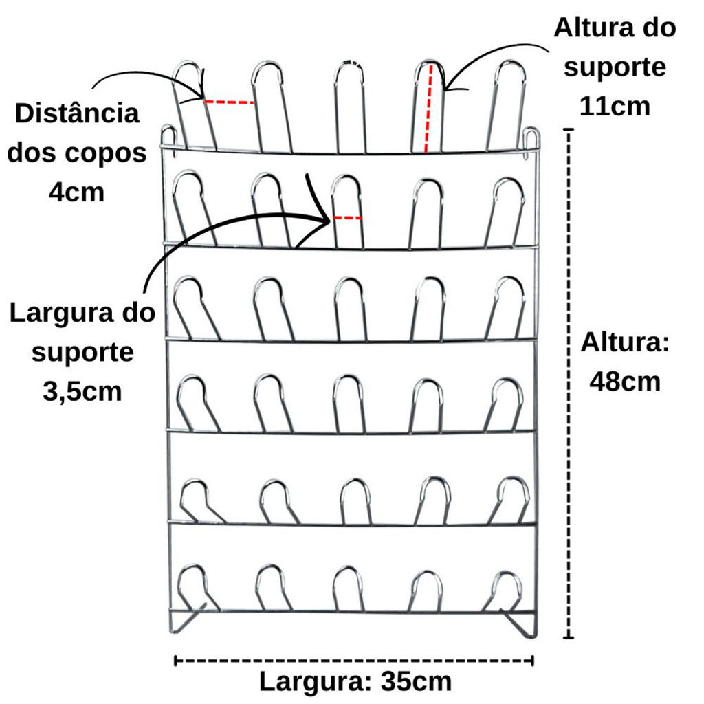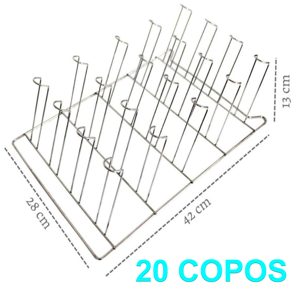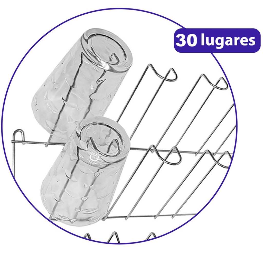 Porta Copos Escorredor Secador de Parede Bar Restaurante 12 - 20 - 24 e 30 Copos Metal Cromado