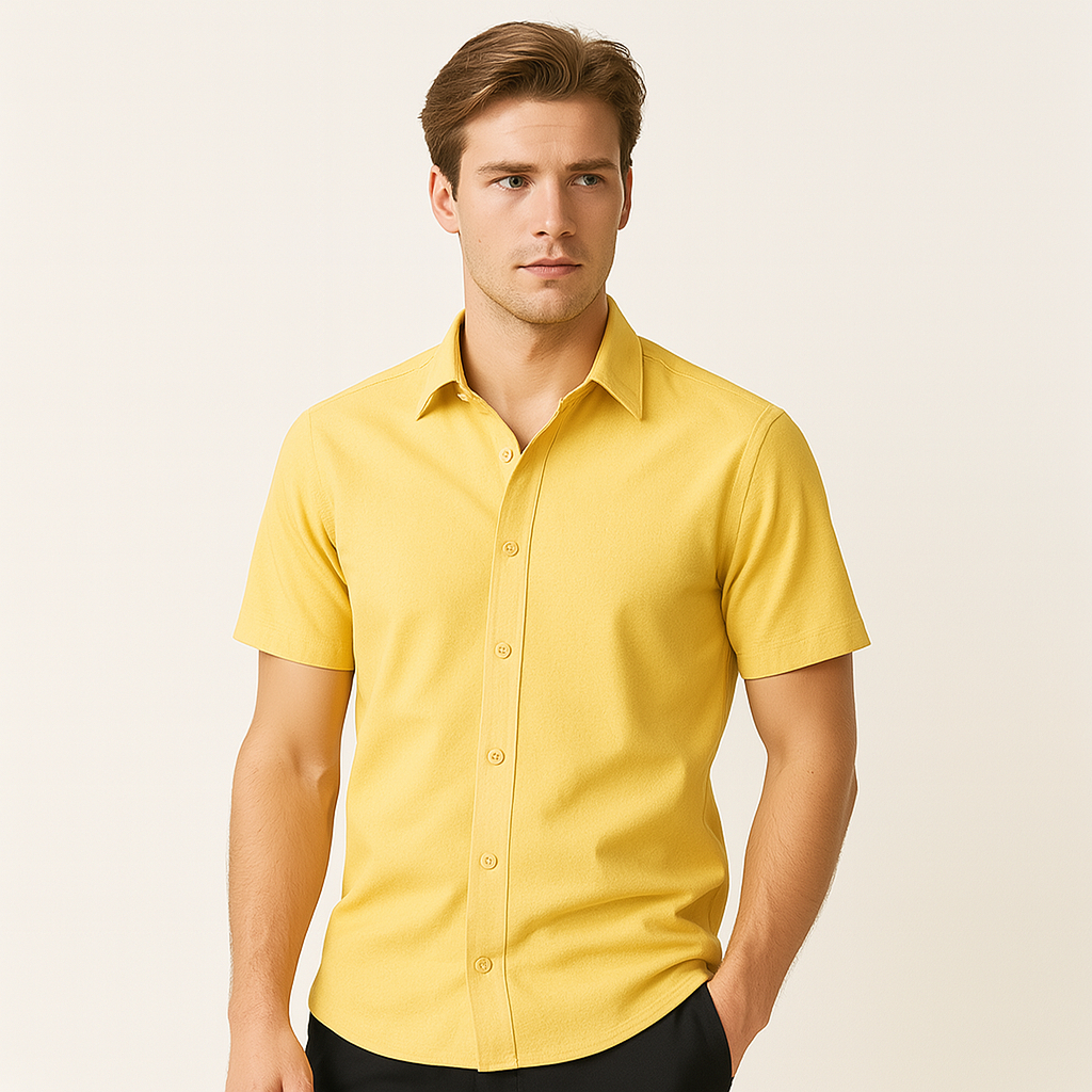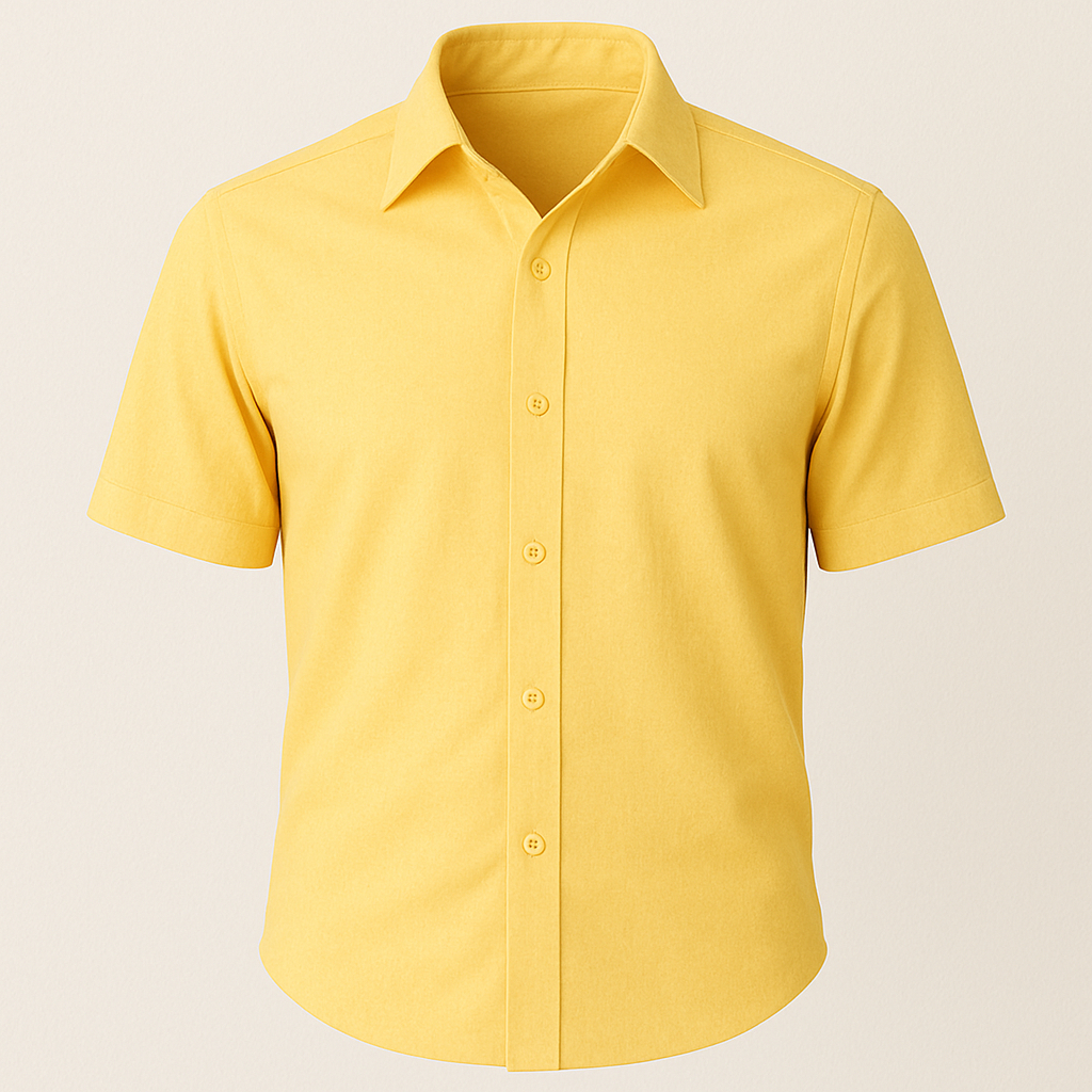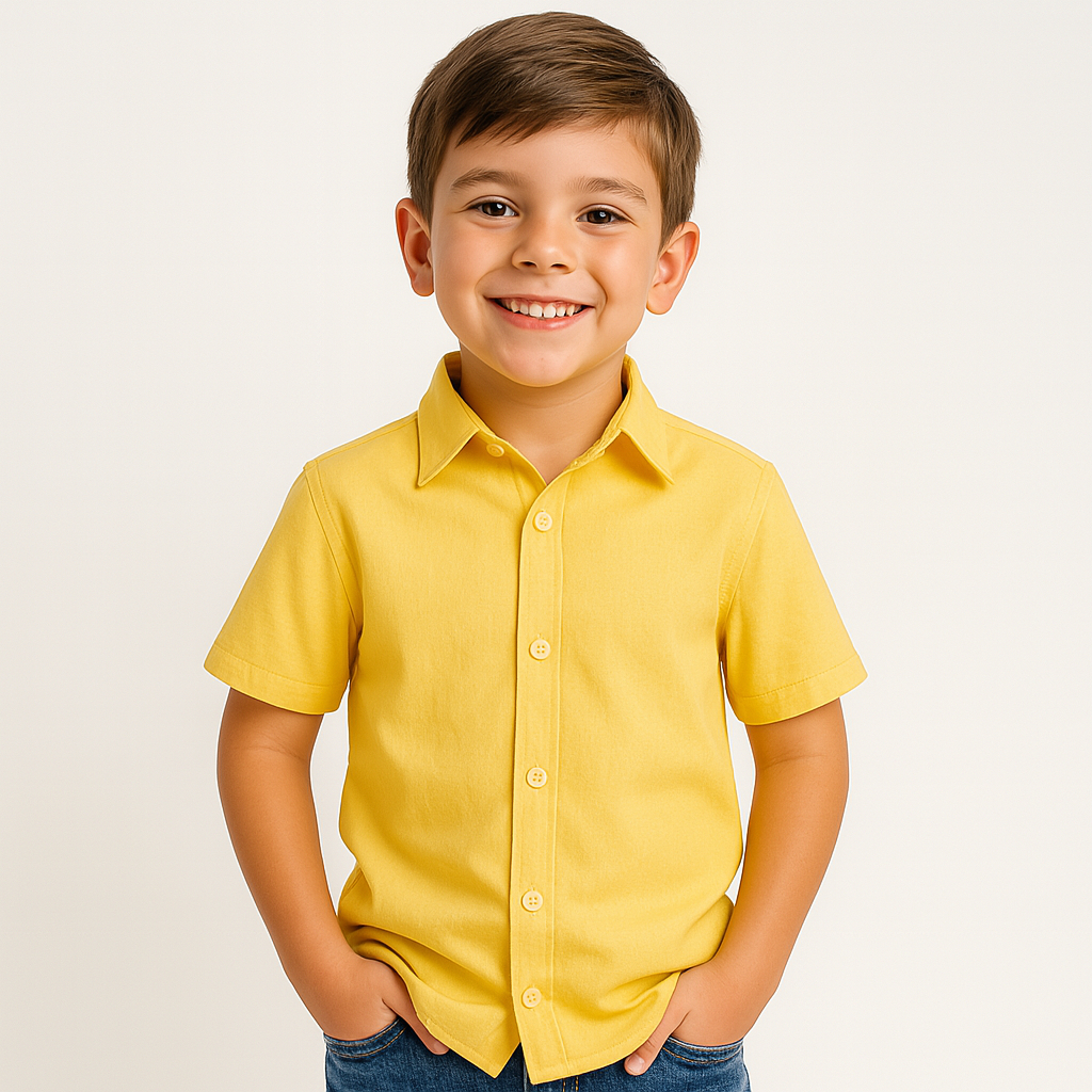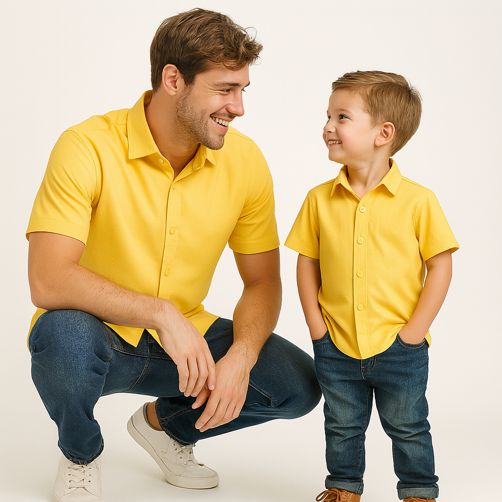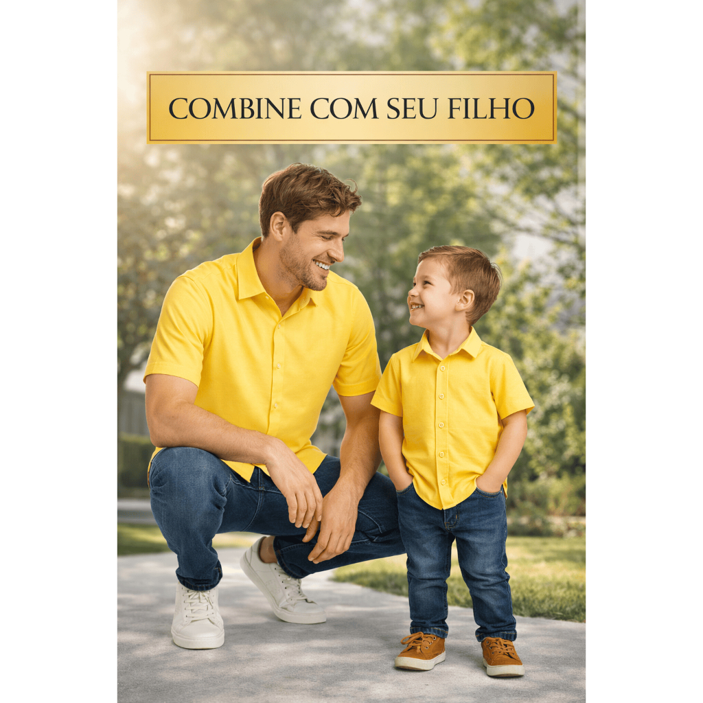 Camisa Social Amarela Tal Pai Tal Filho Kit 2 Unidades Iguais (1x ADULTO + 1x INFANTIL) Manga Curta