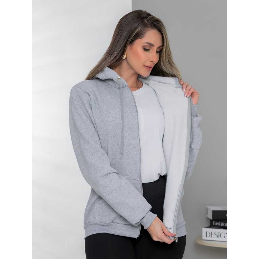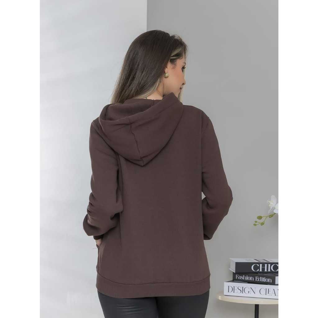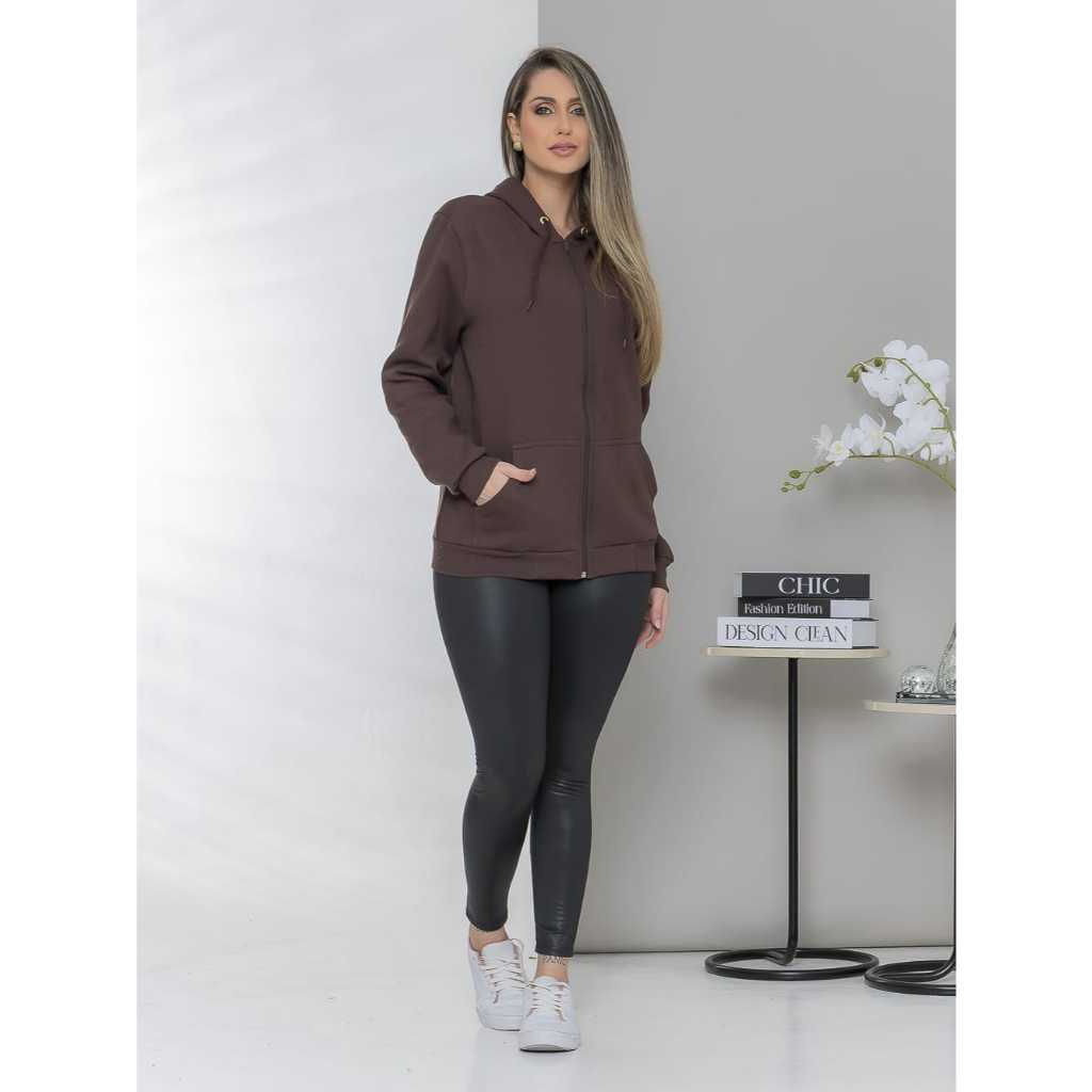 Casaco Moleton De Frio Moda Feminina Flanelado Capuz, Ziper E Bolsa Nas Laterais