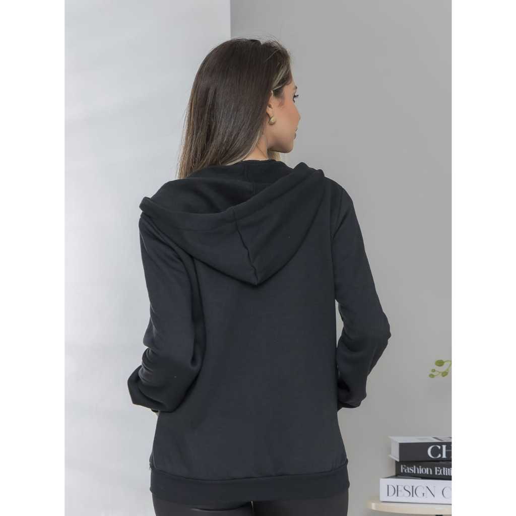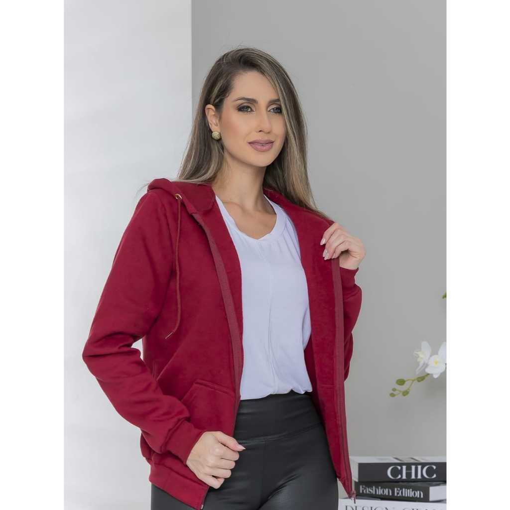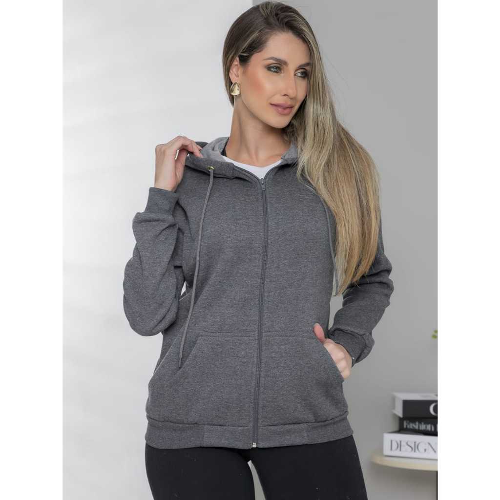 Casaco Moleton De Frio Moda Feminina Flanelado Capuz, Ziper E Bolsa Nas Laterais