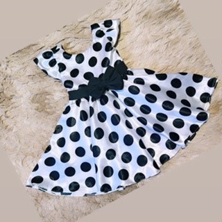 Vestido Menina Elegante Infantil Branco Bolinhas Pretas
