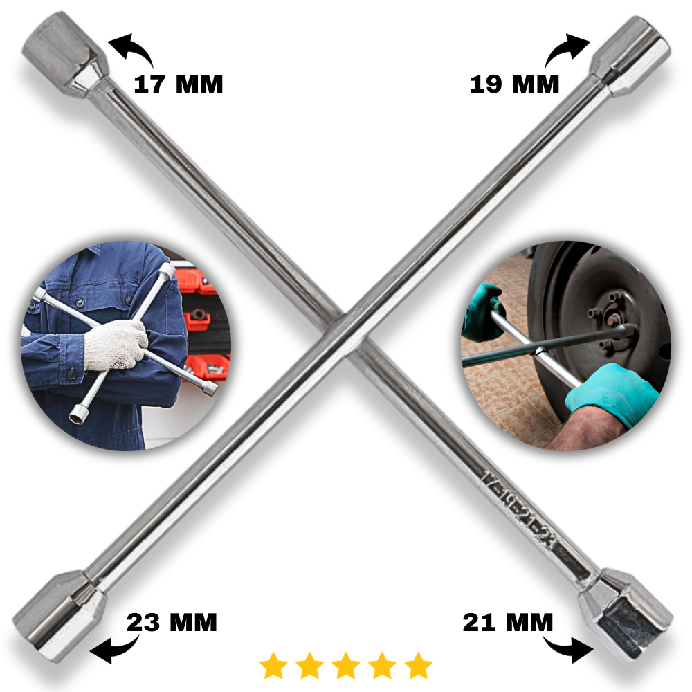 Chave de Roda Estrela Universal Para Carro 4 Bocas 17 19 21 23 Tipo Cruz