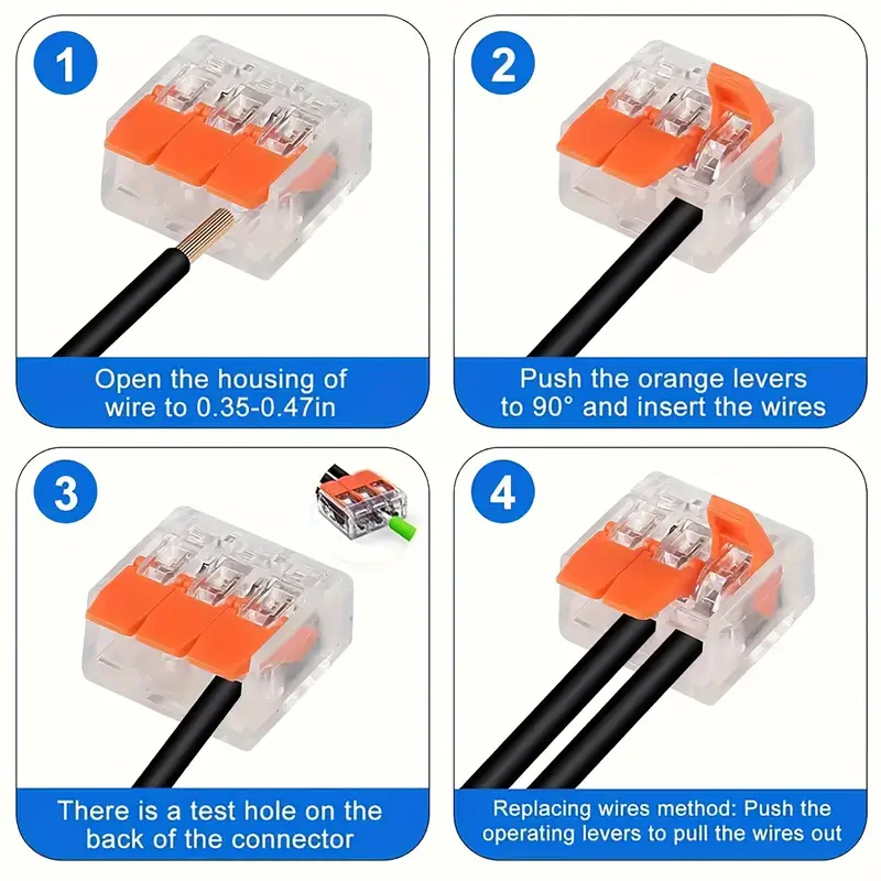 Kit 90 peças conector elétrico compacto e peças derivadas 2, 3 e 5 canais 4 mm e 6 mm