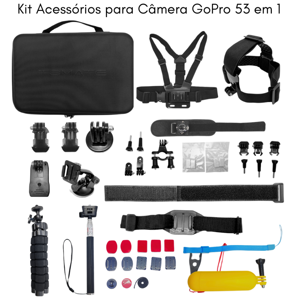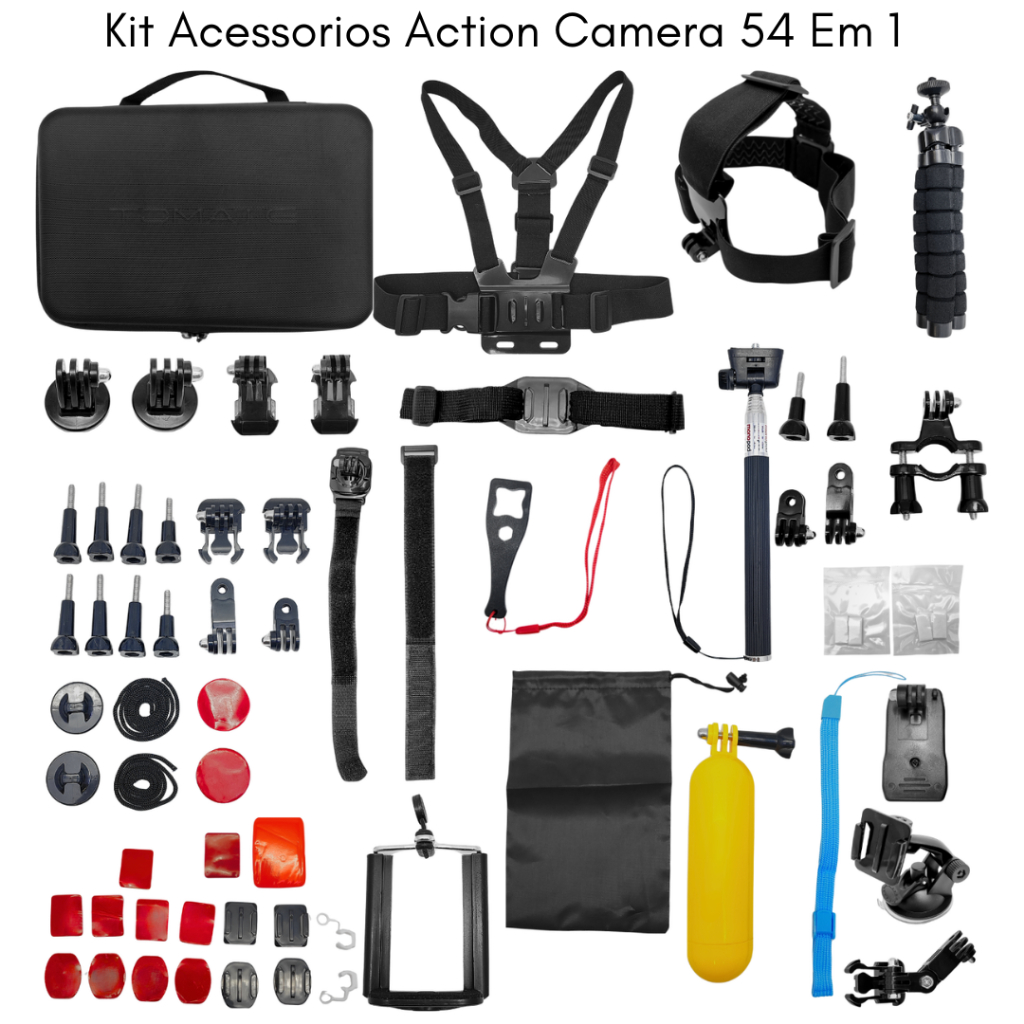 Kit Acessórios 53 ou 54 em 1 para GoPro e Câmera de Ação Completo com Maleta Suportes Profissional