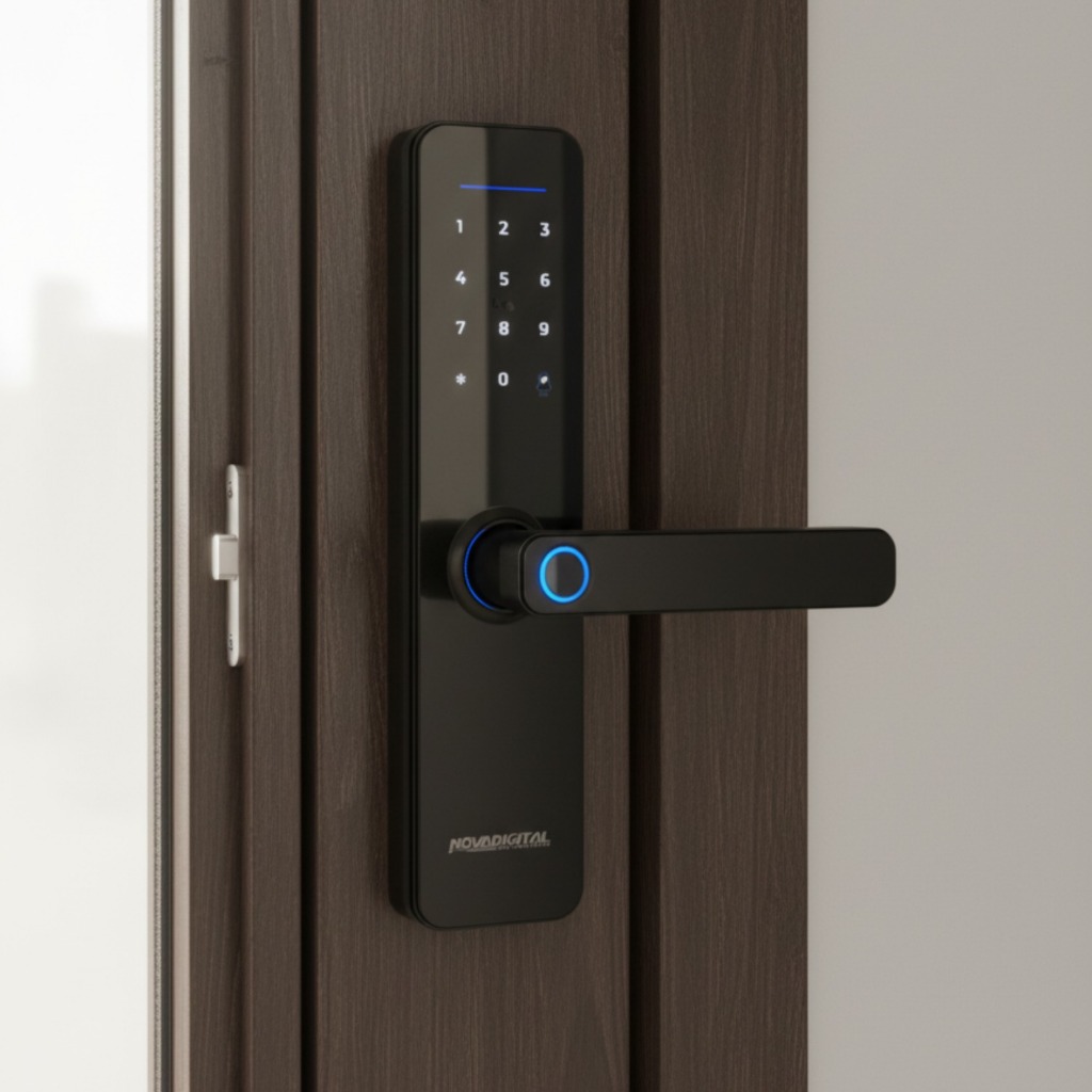 Fechadura Digital Biométrica Novadigital Black WiFi Integrado Smart Home Senha e Cartão de Acesso