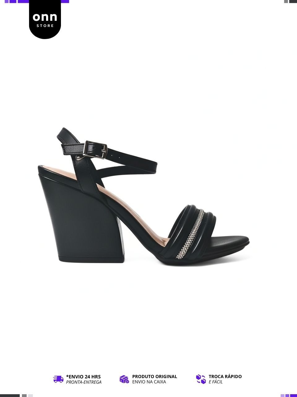 Sandália Moleca Tamanco Salto Bloco Festa Tira com Brilho