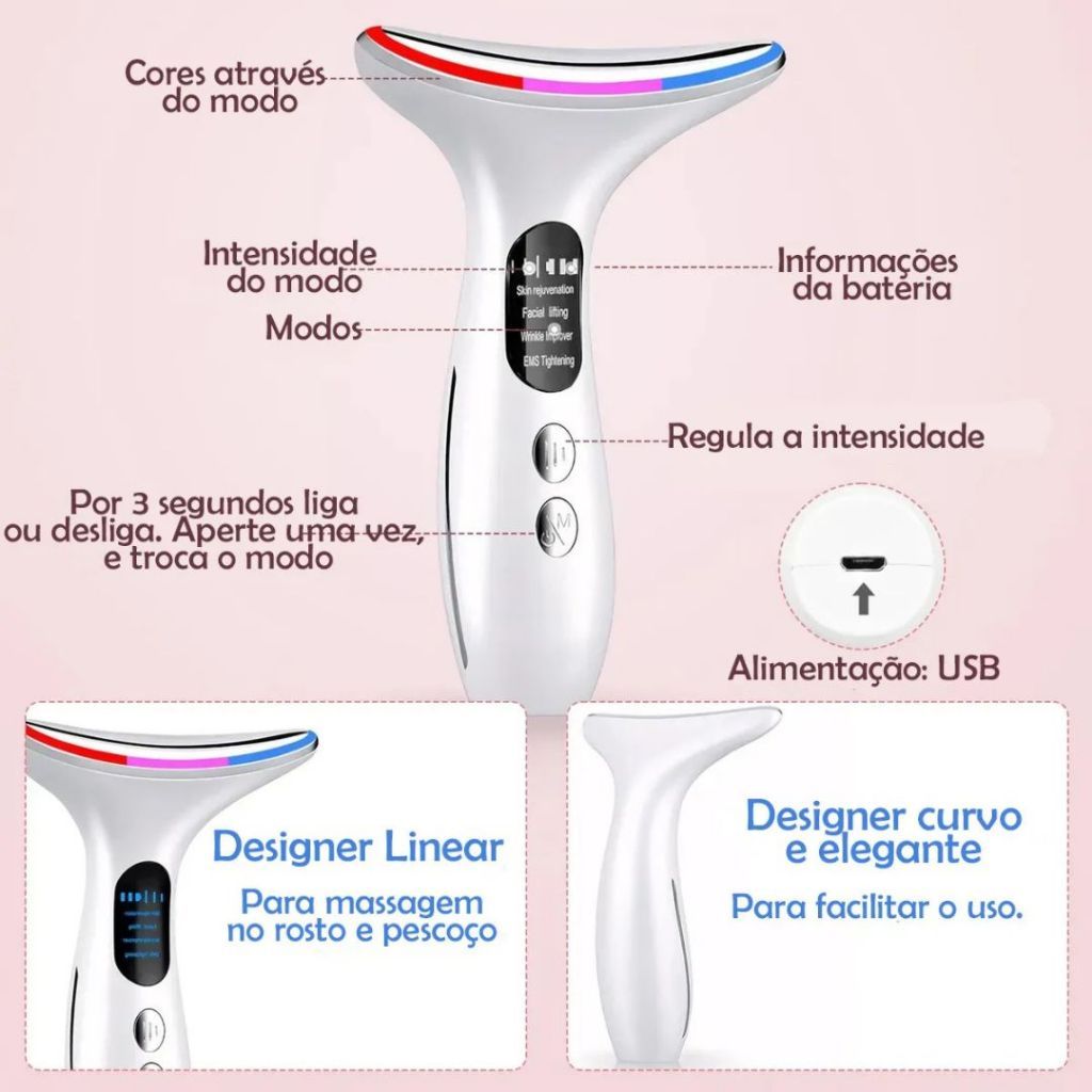 Massageador de Pele LED | Portátil para Rosto e Pescoço + Firmeza