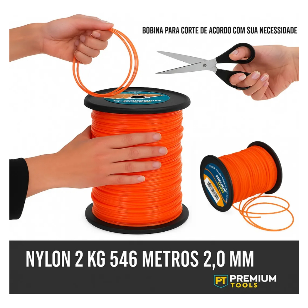 Bobina Fio Nylon Redondo 2.0mm P/ Carretel De Roçadeira 546m Laranja