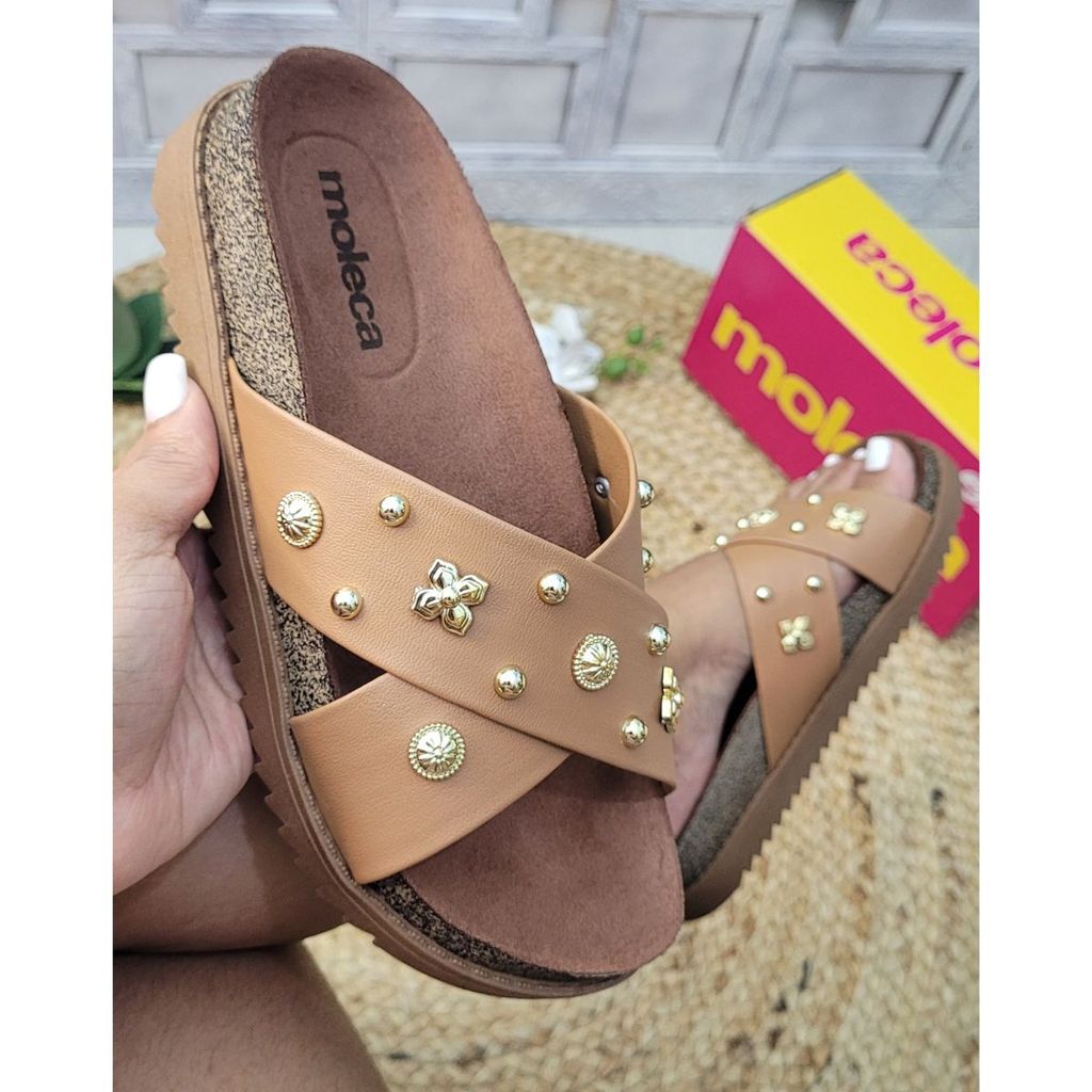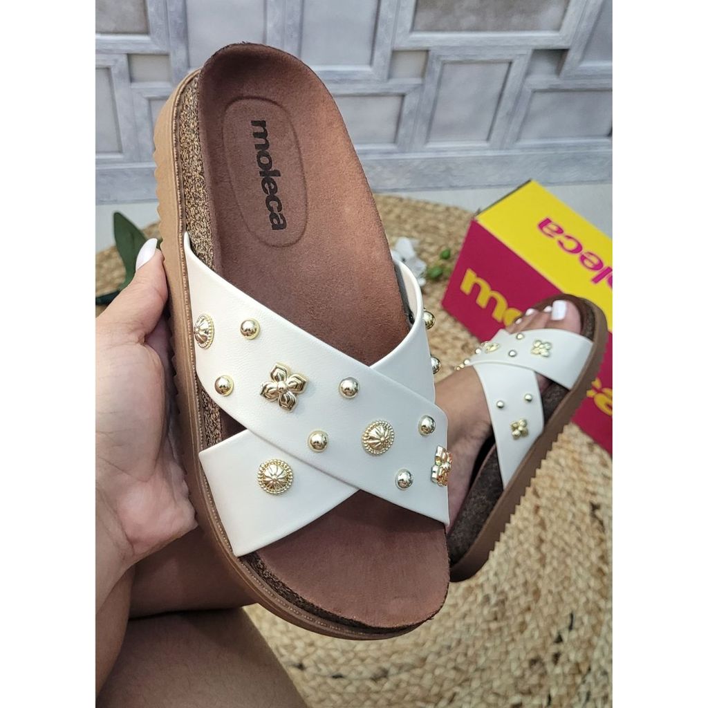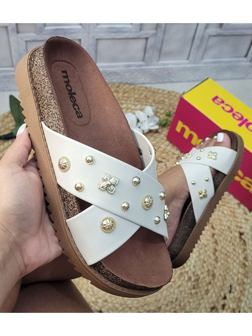 Sandália Moleca Slide Tiras Cruzadas e Aplicações Douradas