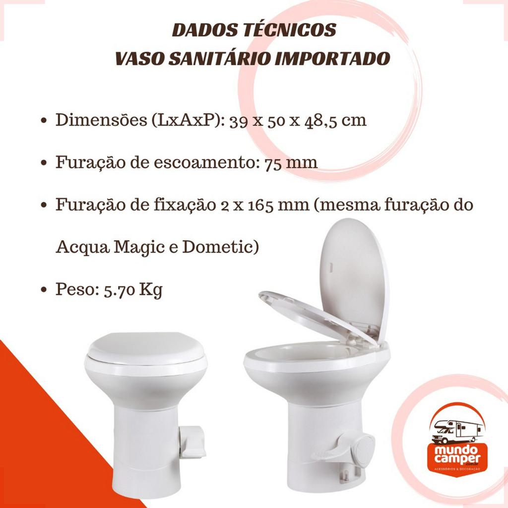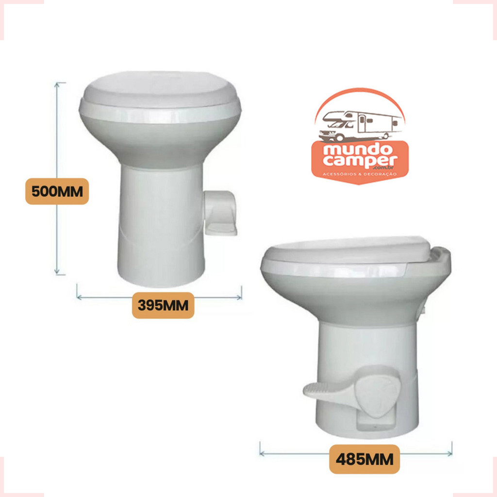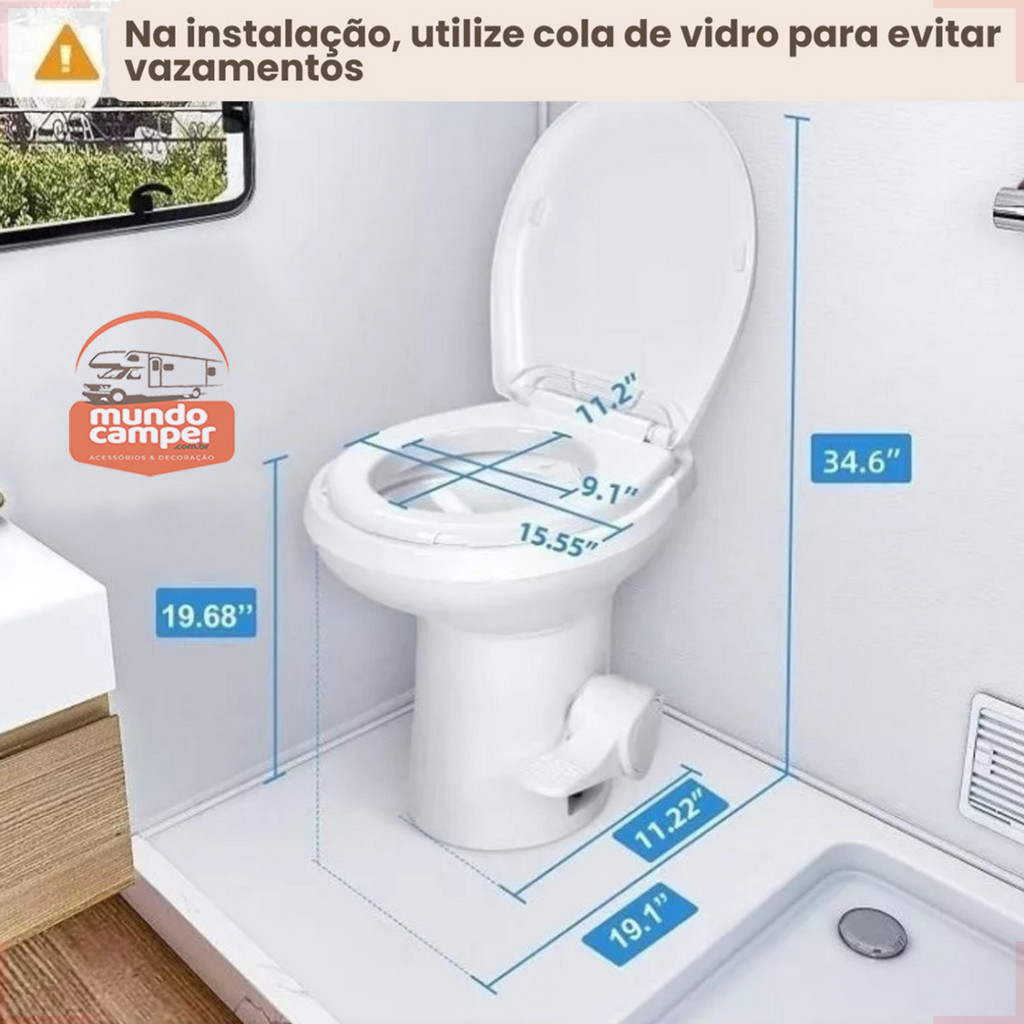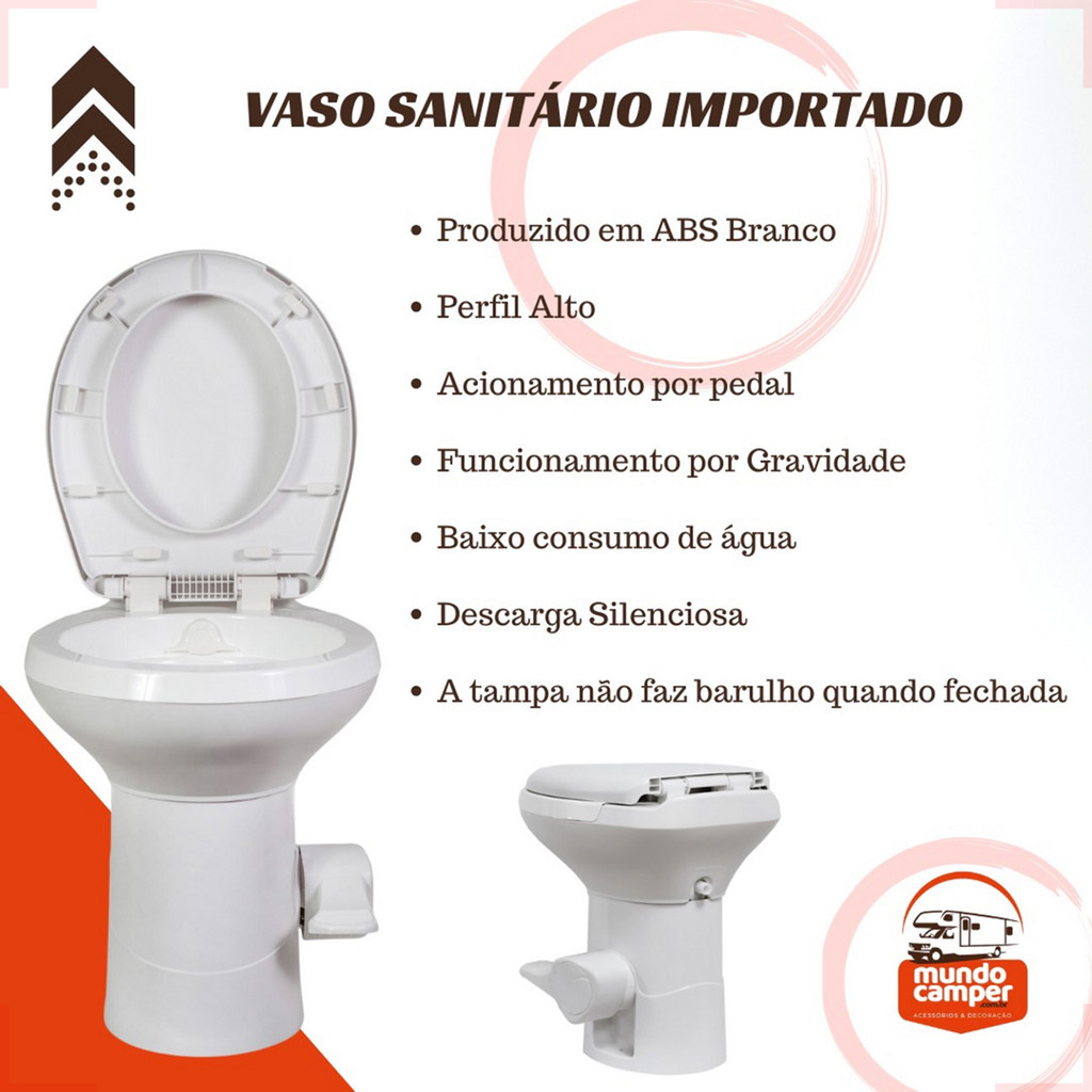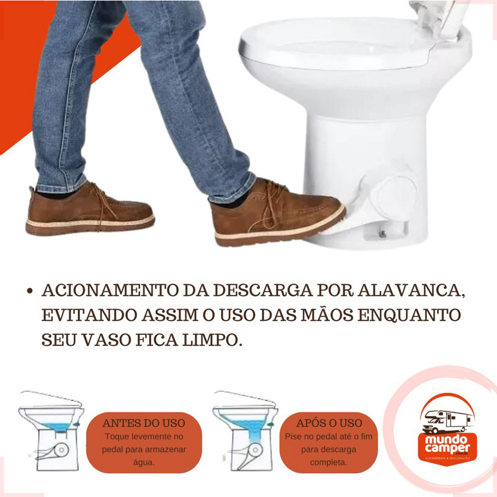 Vaso Sanitário Fixo Perfil Alto com pedal Banheiro Motorhome Trailer Cor Branco CHH Mundo Camper