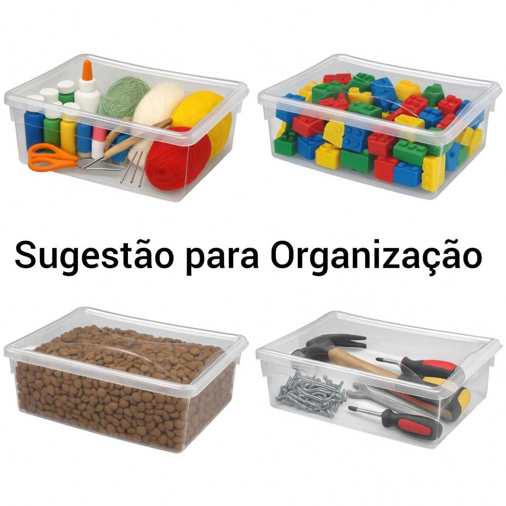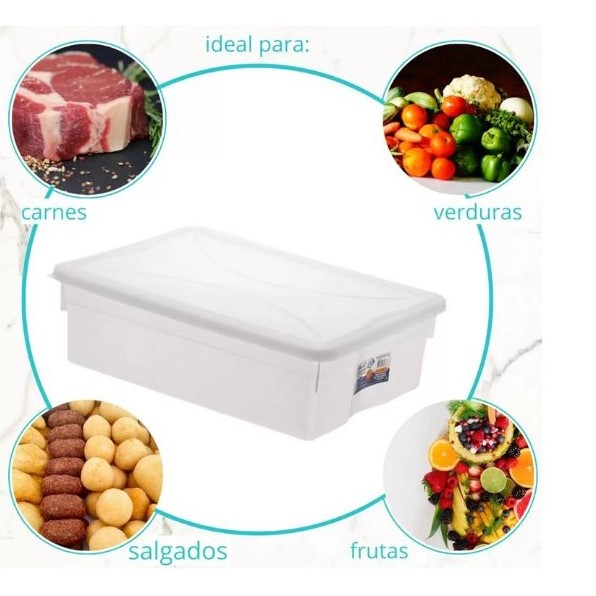 Kit 04 Caixas Pote Organizador 05 litros com Tampa Multiuso Geladeira Freezer Padarias Pizzaria