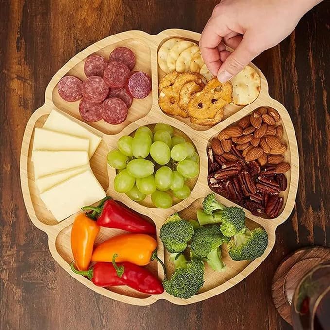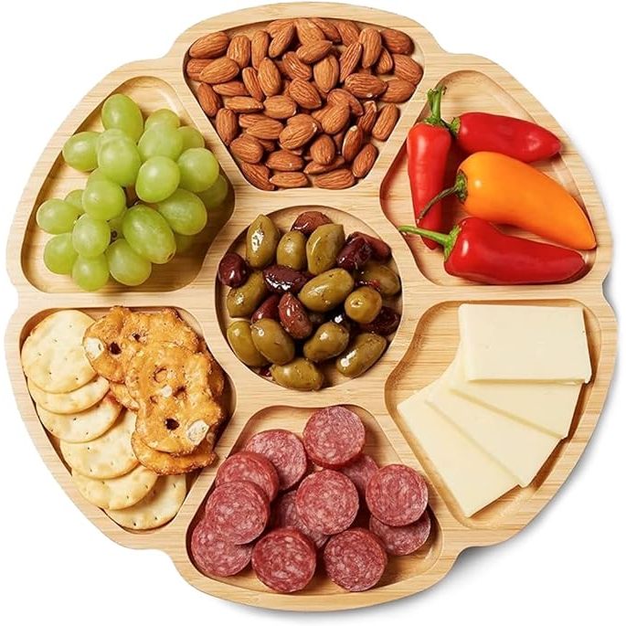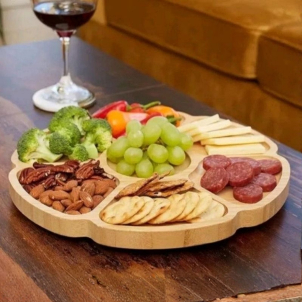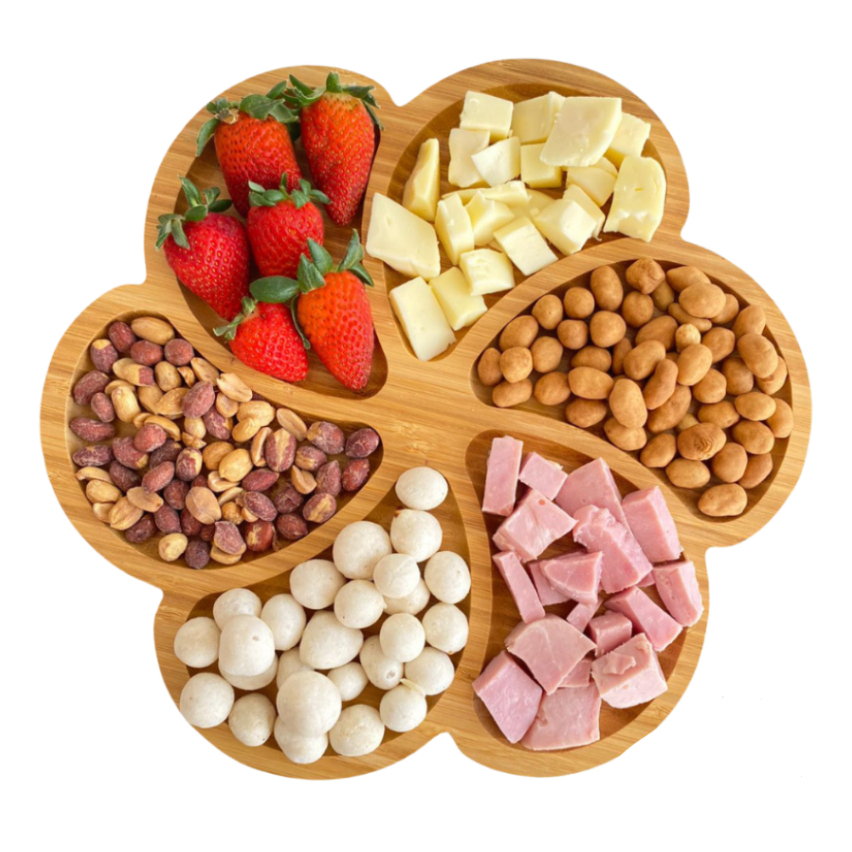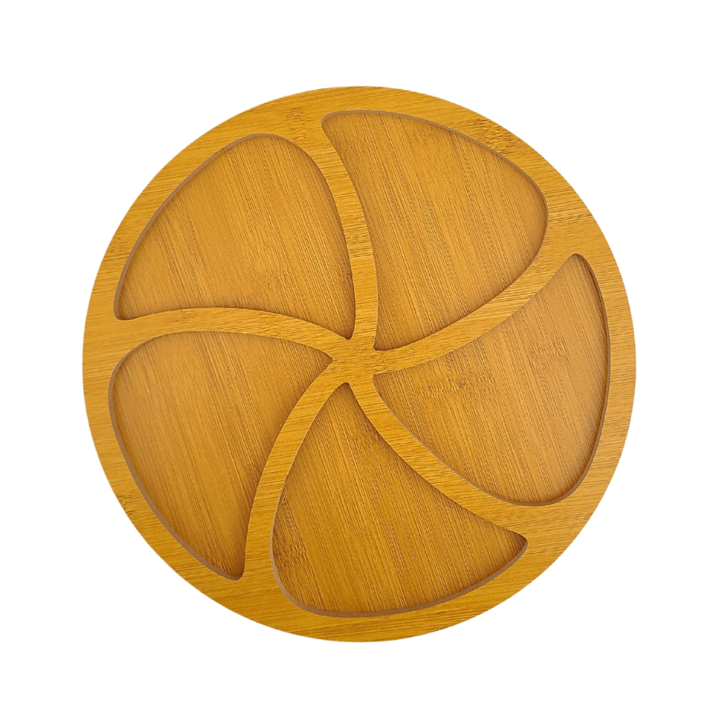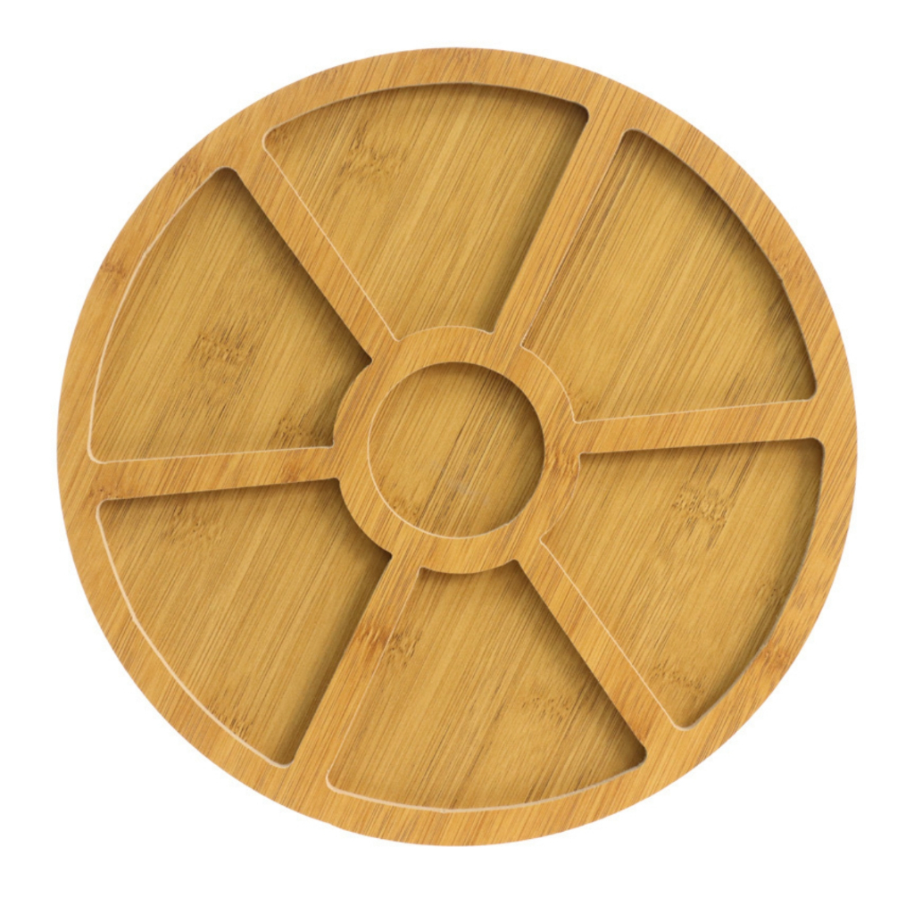 Petisqueira Redonda Flower com 7 Divisórias para Amendoim, Frios, Doces - 29cm - tipo Bambu MDF