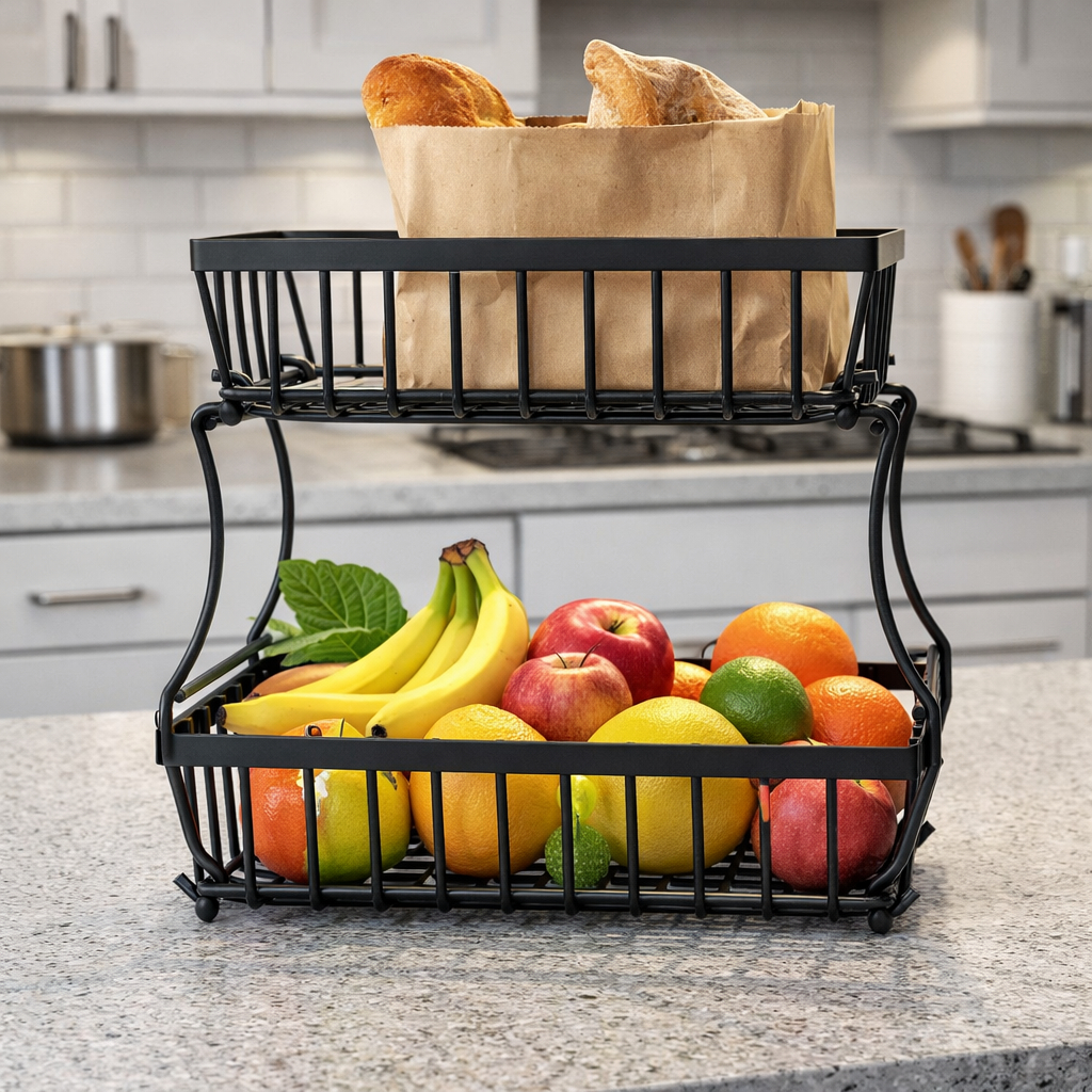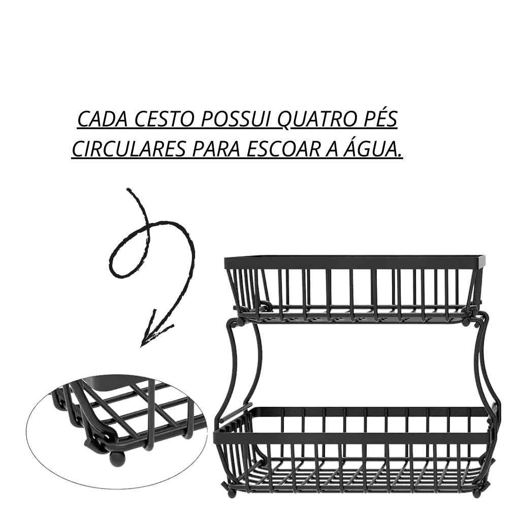 Fruteira de Mesa ou Cesto removivel Multiuso Frutas Legumes Luxo 2 andares