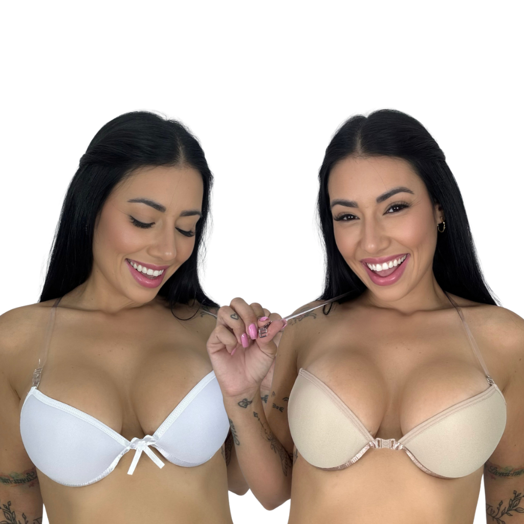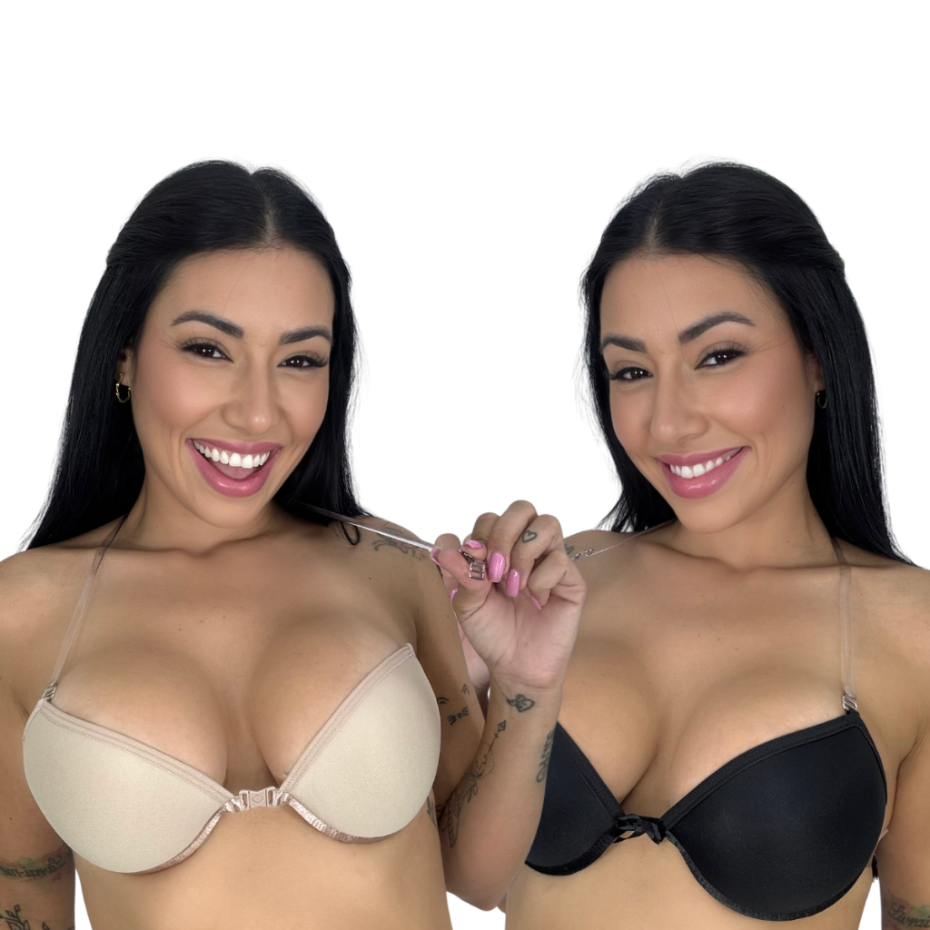 Kit 2 Sutiã Costas Nua Com Alças de Silicone Com Bojo e Alças Removíveis e Fecho Frontal