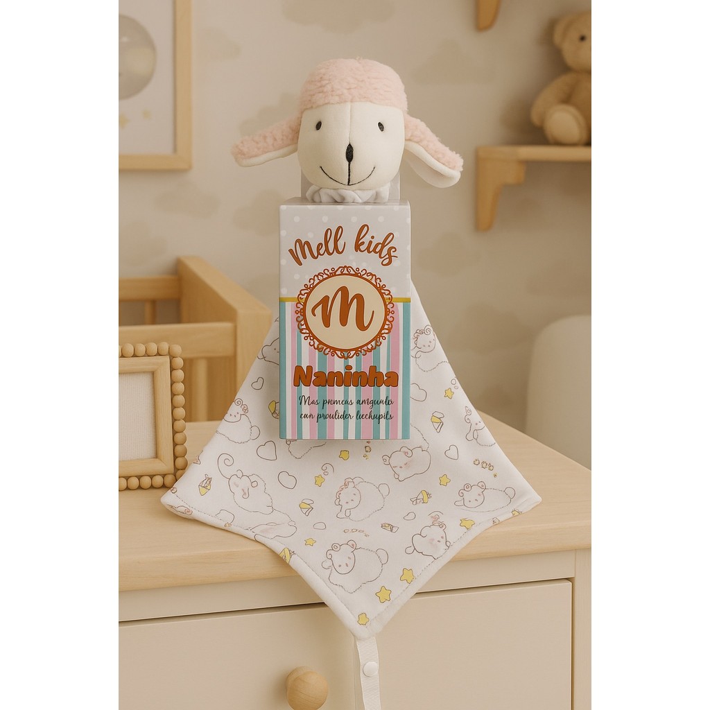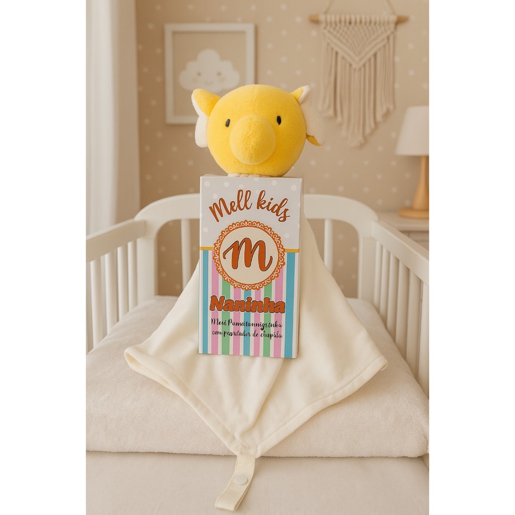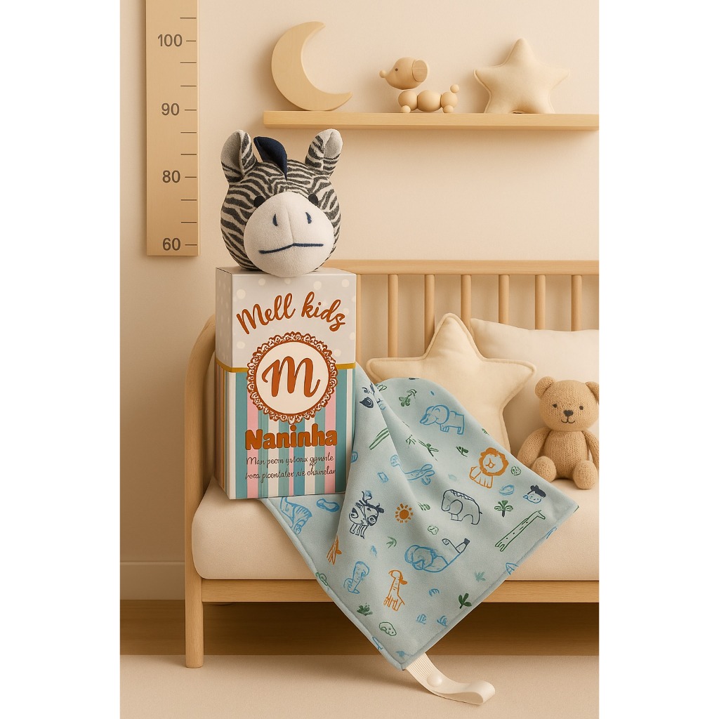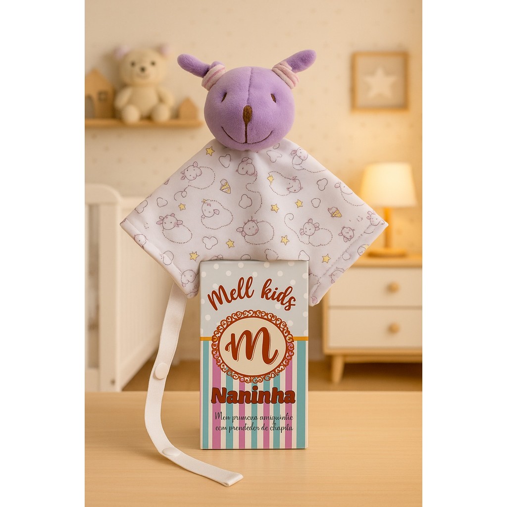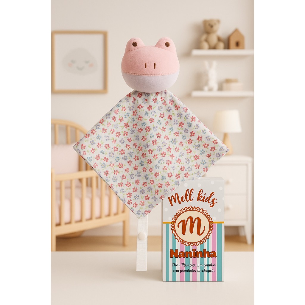 Naninha de bichinho pelúcia e fralda pano com prendedor de chupeta para bebê
