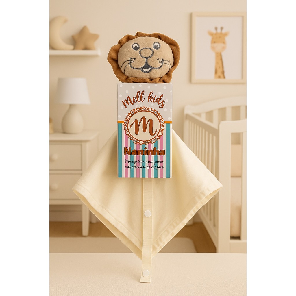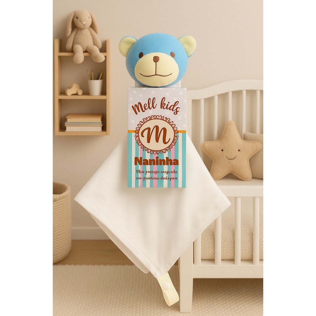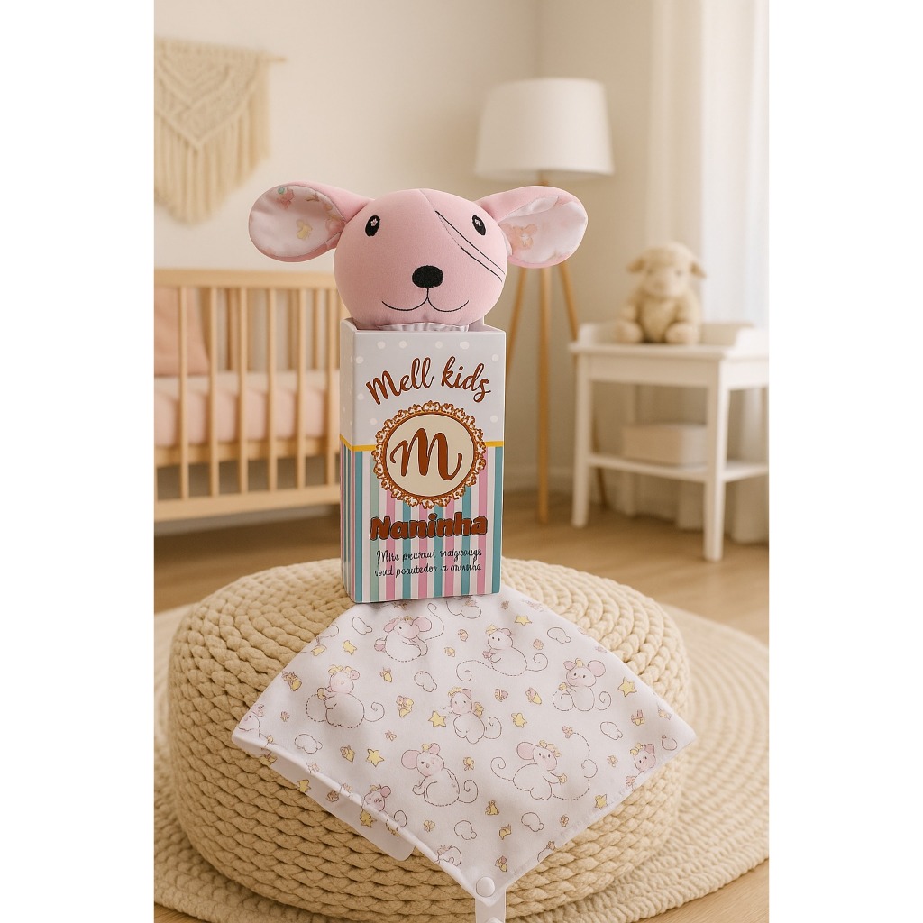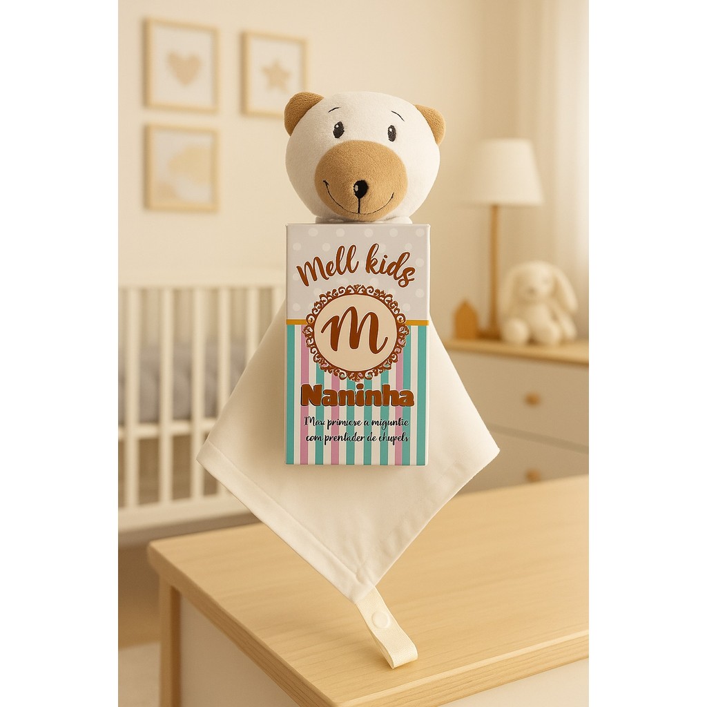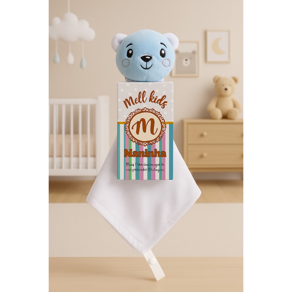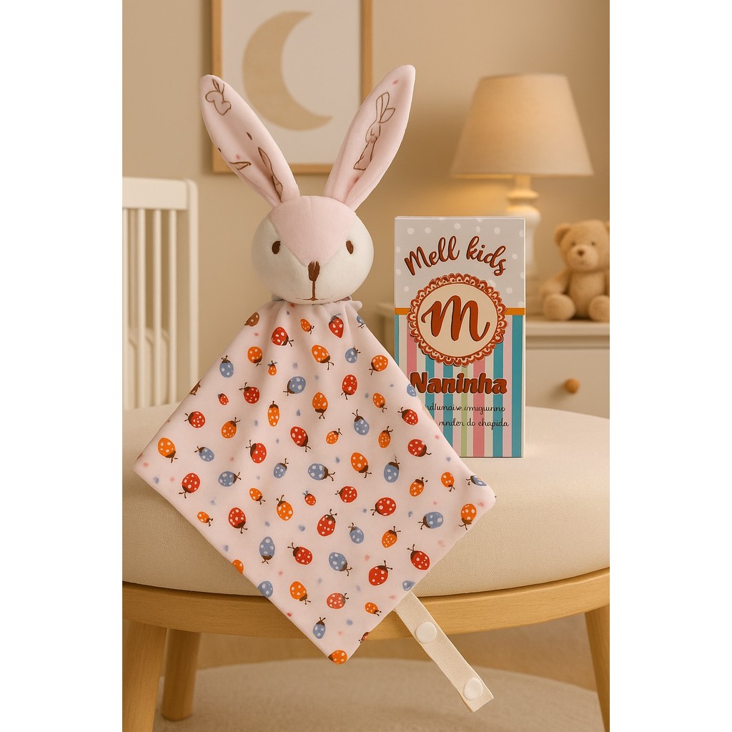 Naninha de bichinho pelúcia e fralda pano com prendedor de chupeta para bebê