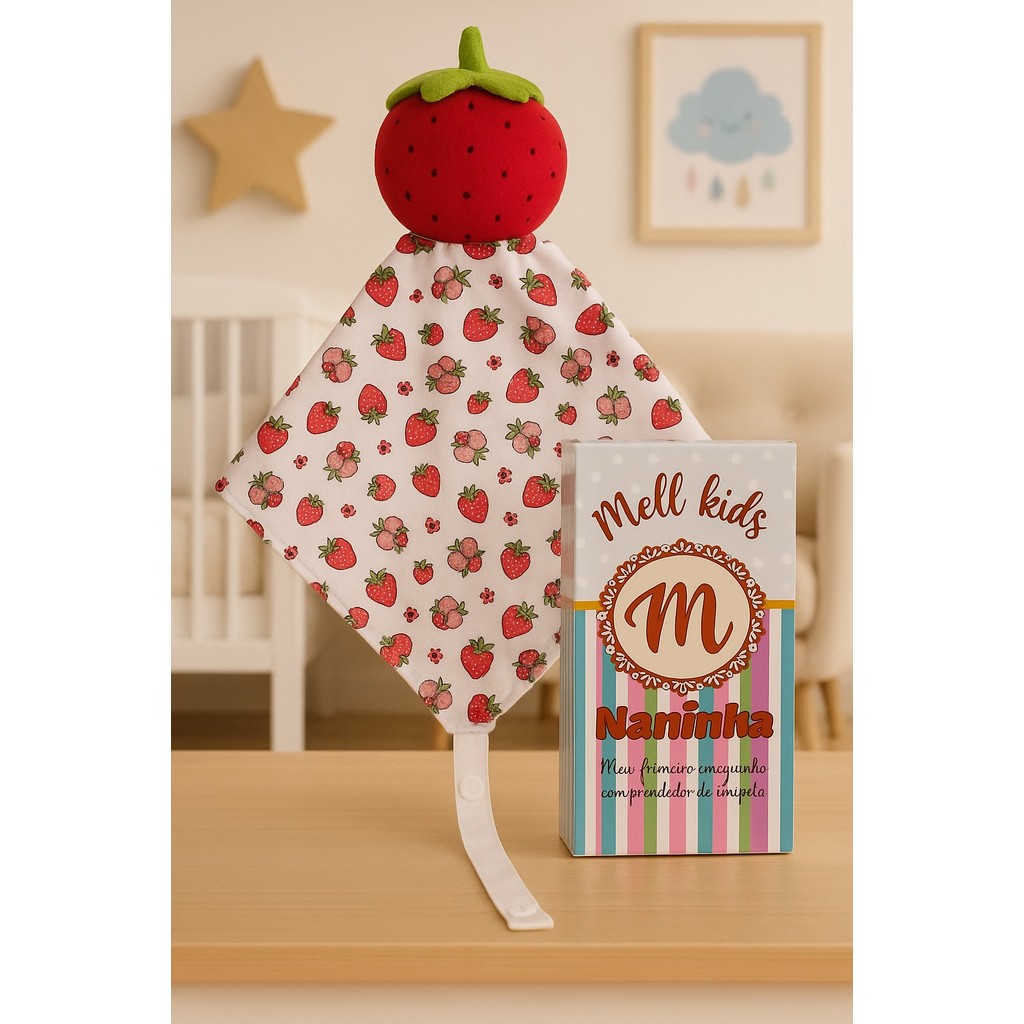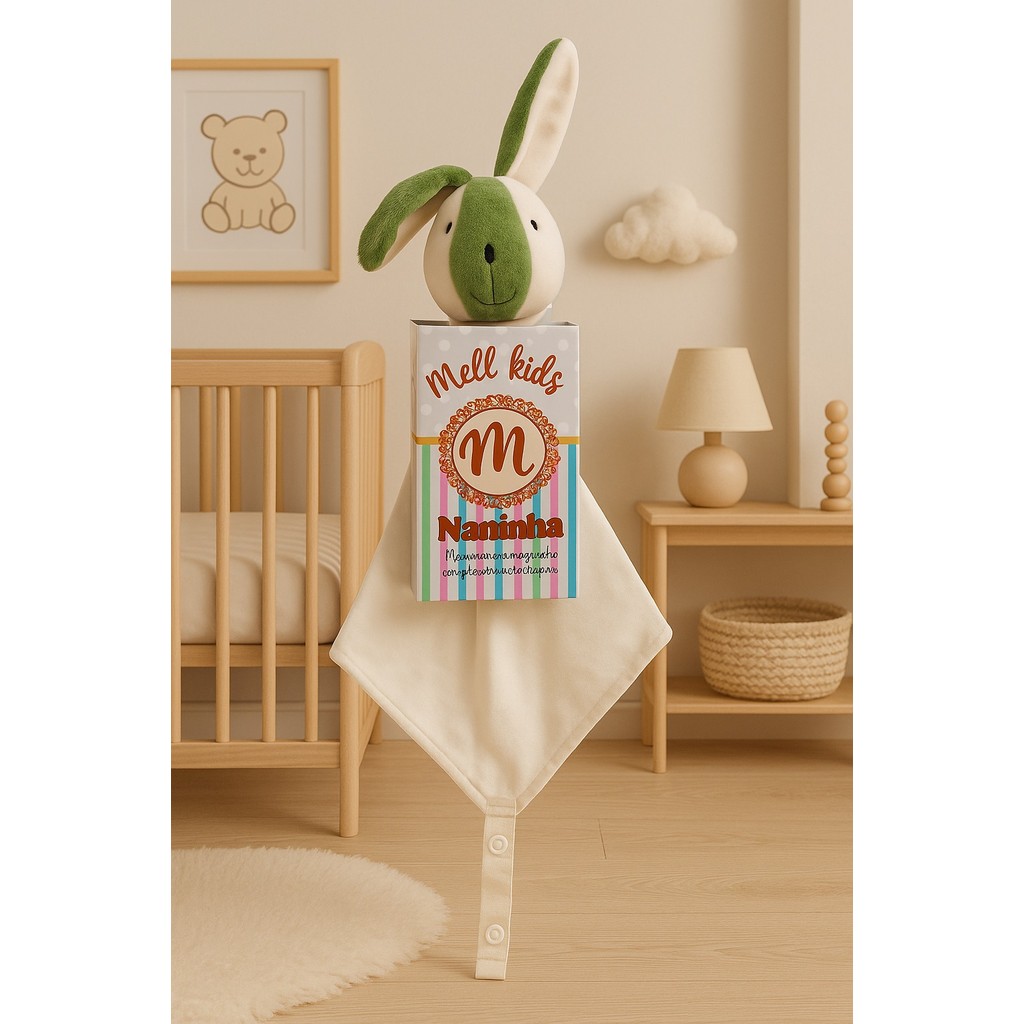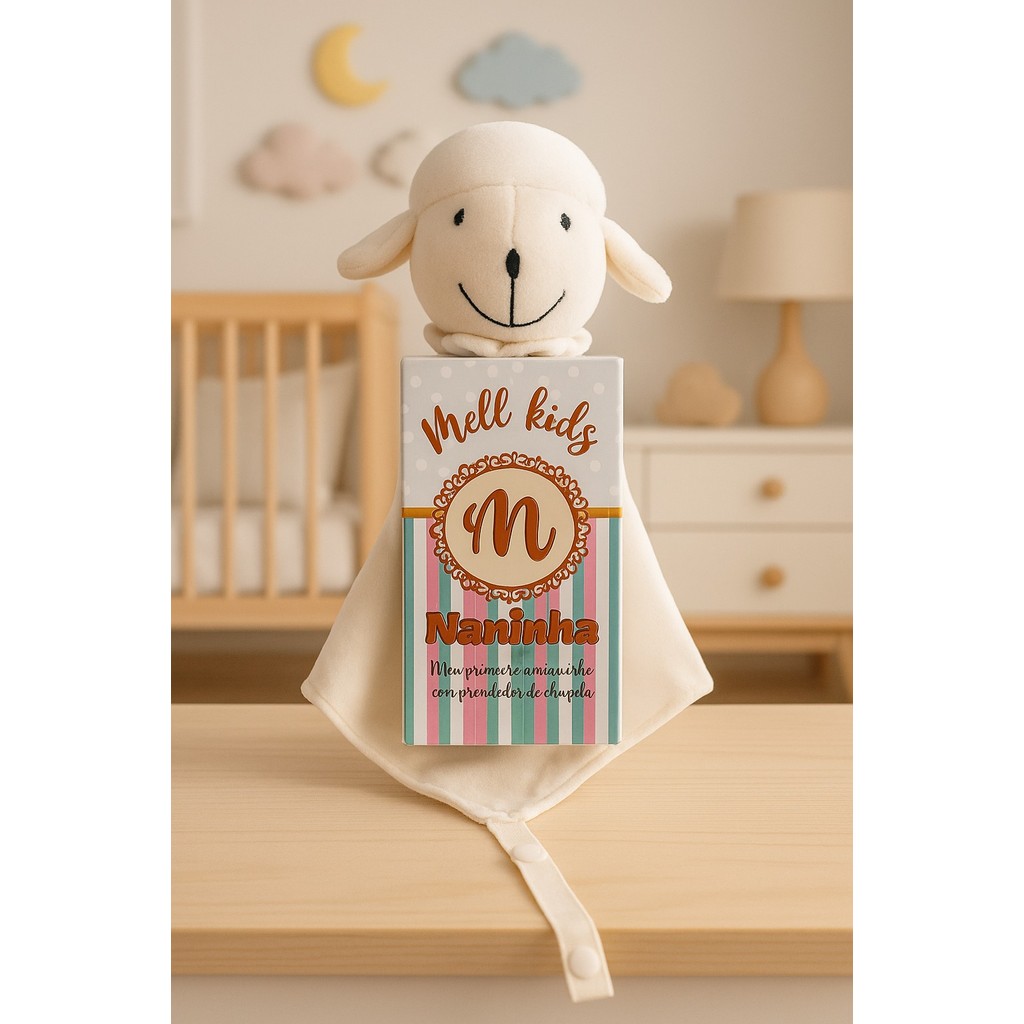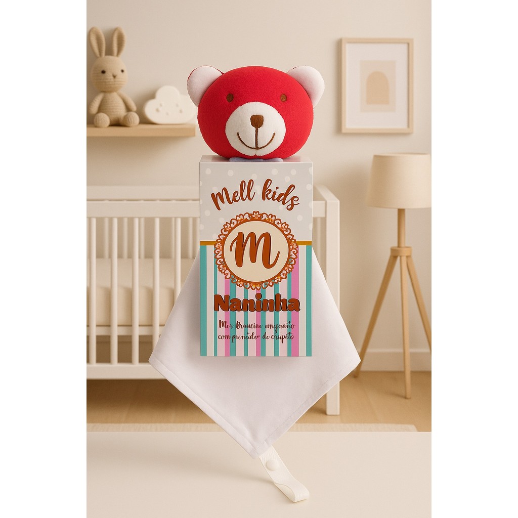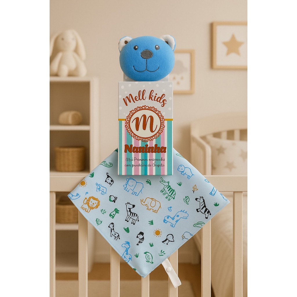 Naninha de bichinho pelúcia e fralda pano com prendedor de chupeta para bebê