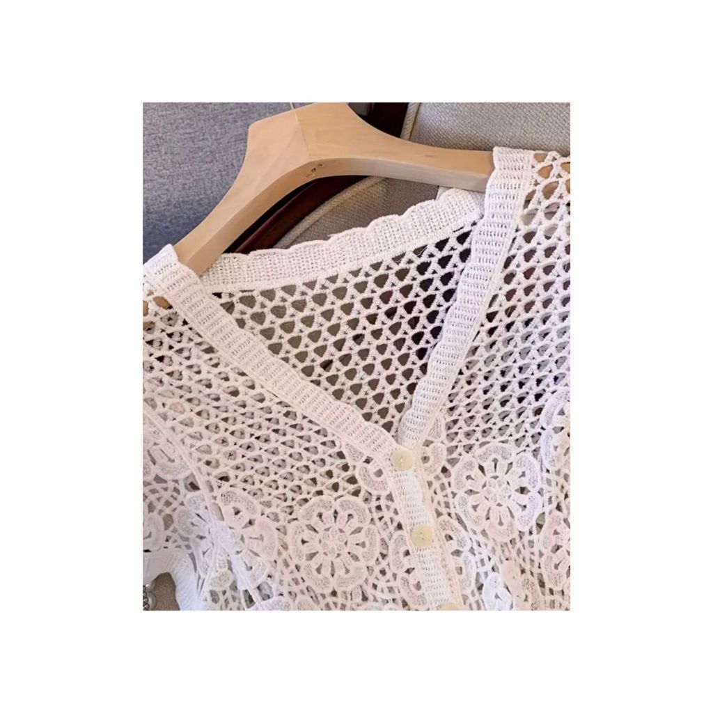 Cardigan Bohemio Feminino - Decote em V, Manga Longa com Corte Geométrico, Cobertura Leve de Verão, Top Casual Chic para
