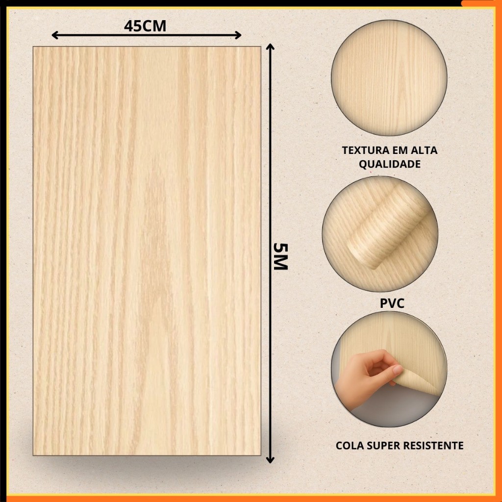 Papel Contact Adesivo Madeira Rolo 5 Metros x 45cm Envelopamento Móveis