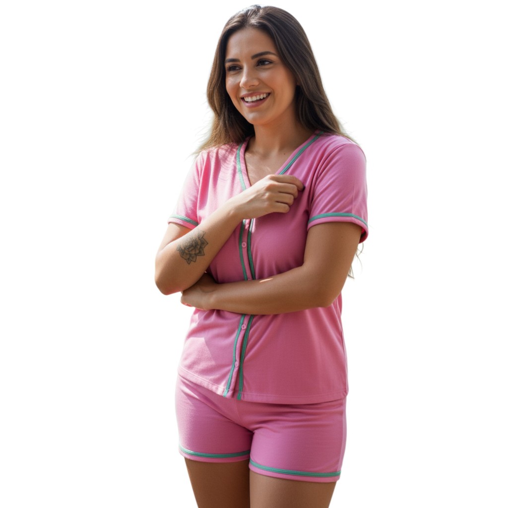 Kit 3 Pijamas Amamentação Americano baby doll Cirúrgico com botões em Malha Cores Sortidas