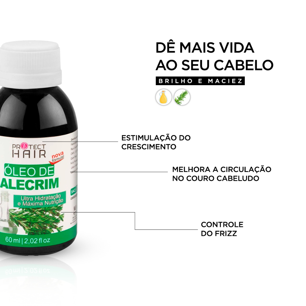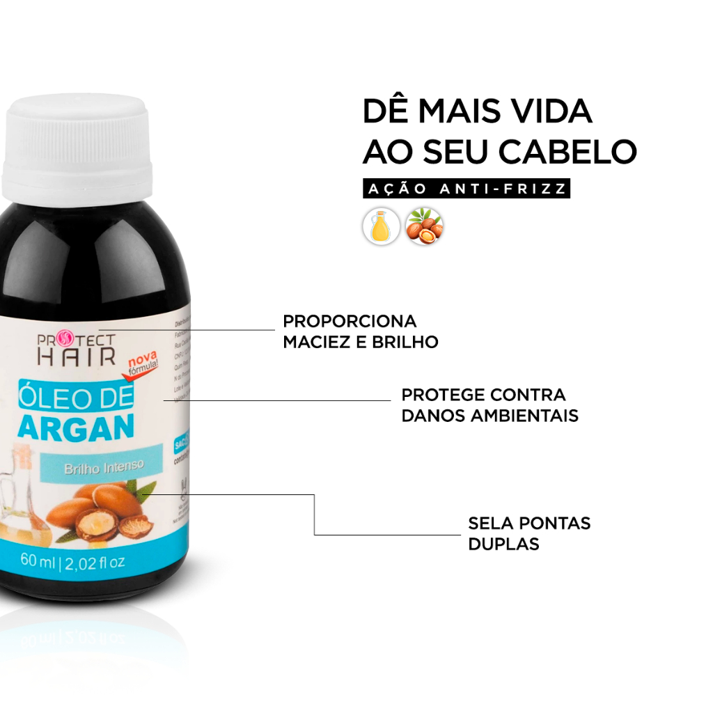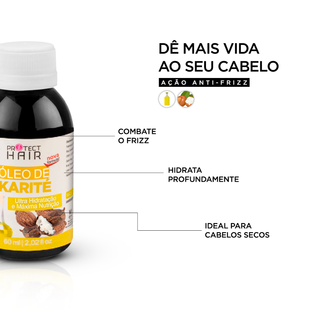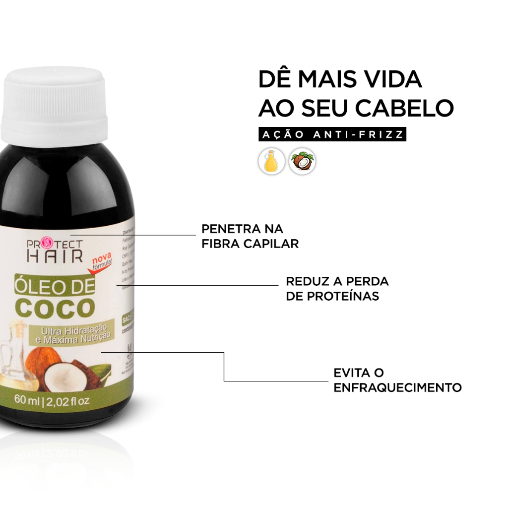 Óleo vegetal capilar Protect Hair 60 ml para umectação hidratação nutrição e reconstrução do cabelo