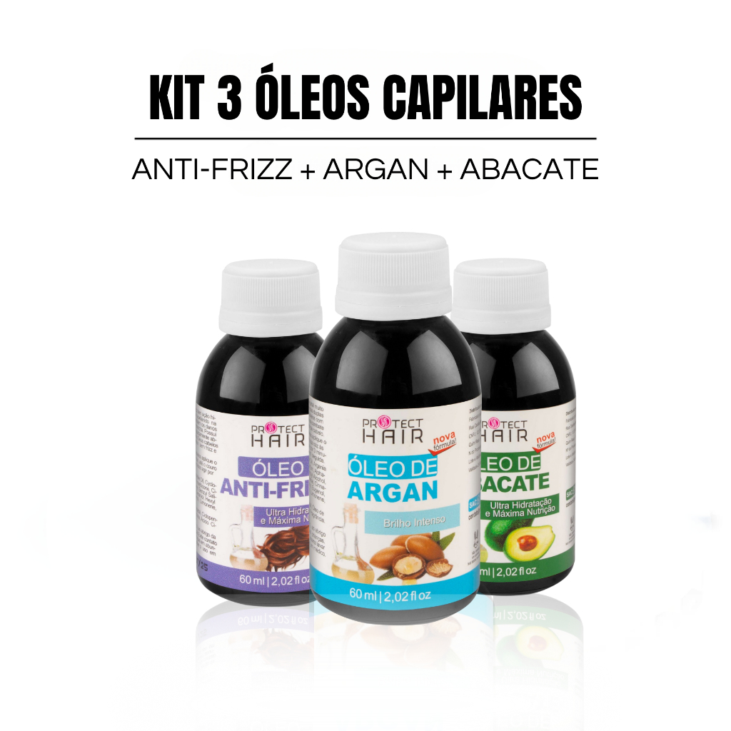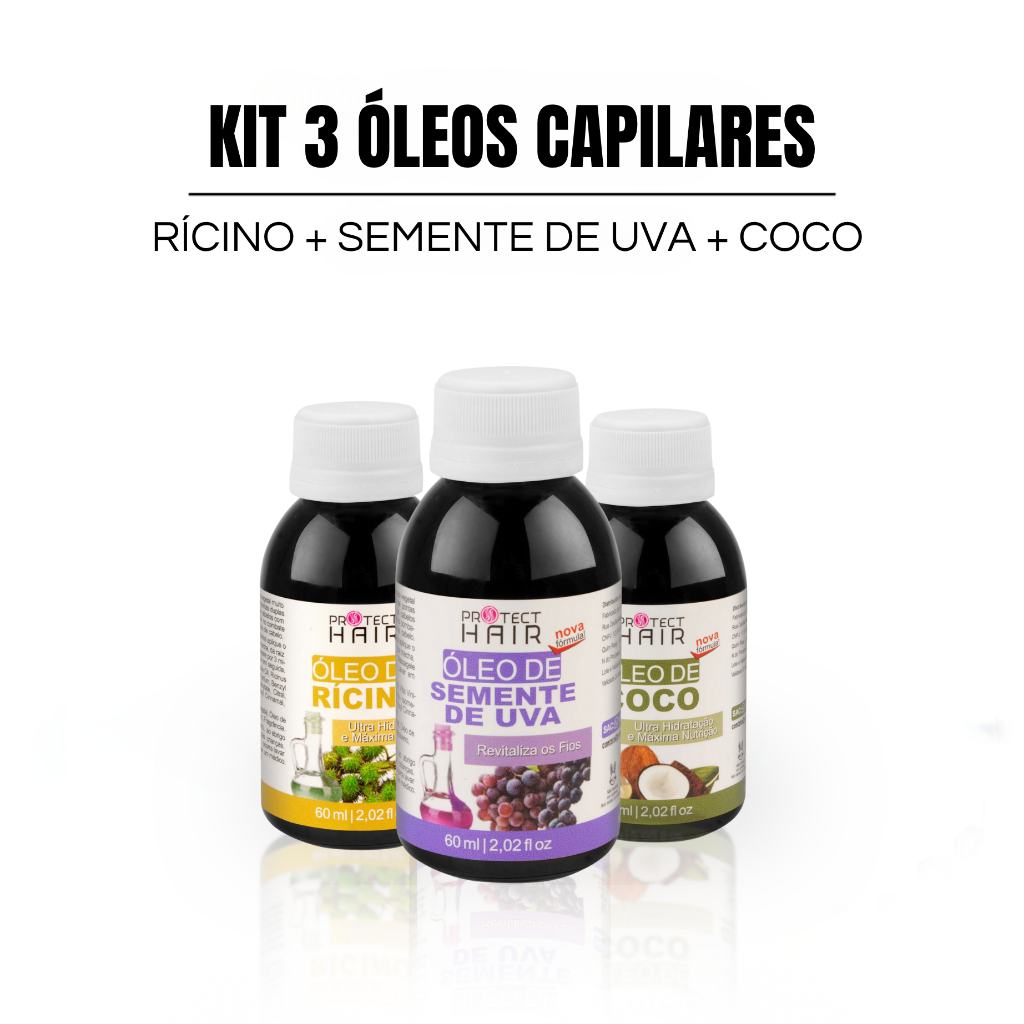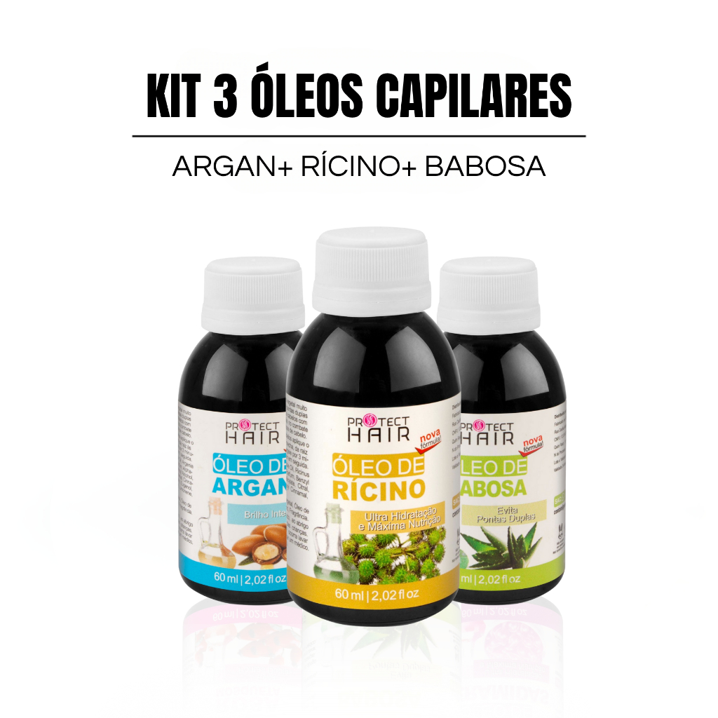 Kit 3 óleos vegetais para umectação terapia capilar hidratação nutrição Protect Hair 60ml